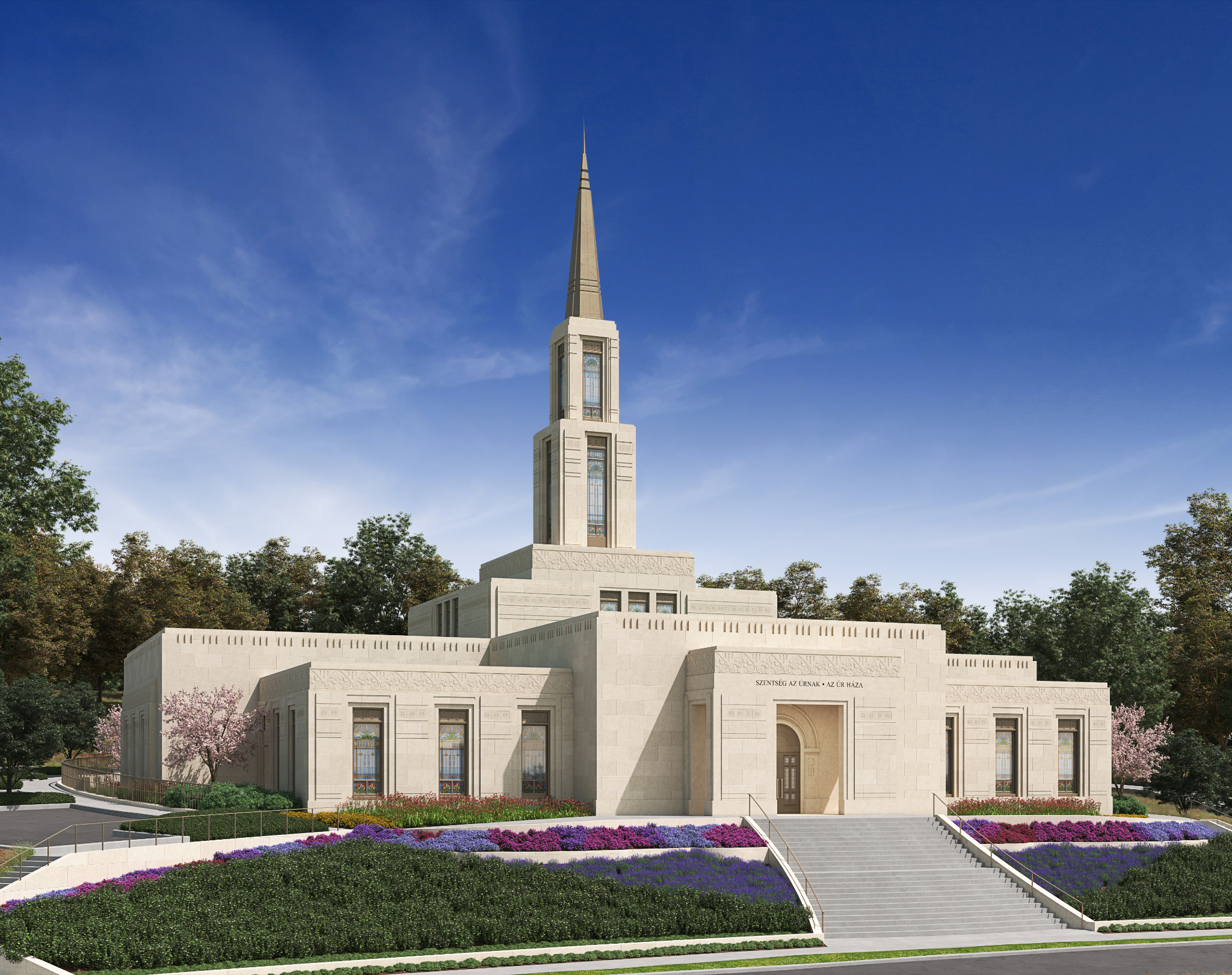 An exterior rendering of the Budapest Hungary Temple.2025 by Intellectual Reserve, Inc. All rights reserved.There are over 5,200 Latter-day Saints in more than 20 congregations in Hungary, a country in central Europe. The first missionaries from the Church of Jesus Christ arrived in Hungary in 1885. Missionary efforts ceased for several decades following World War I. The Church received official recognition from the Hungarian government in 1988, and the first meetinghouse in the country was dedicated one year later.
