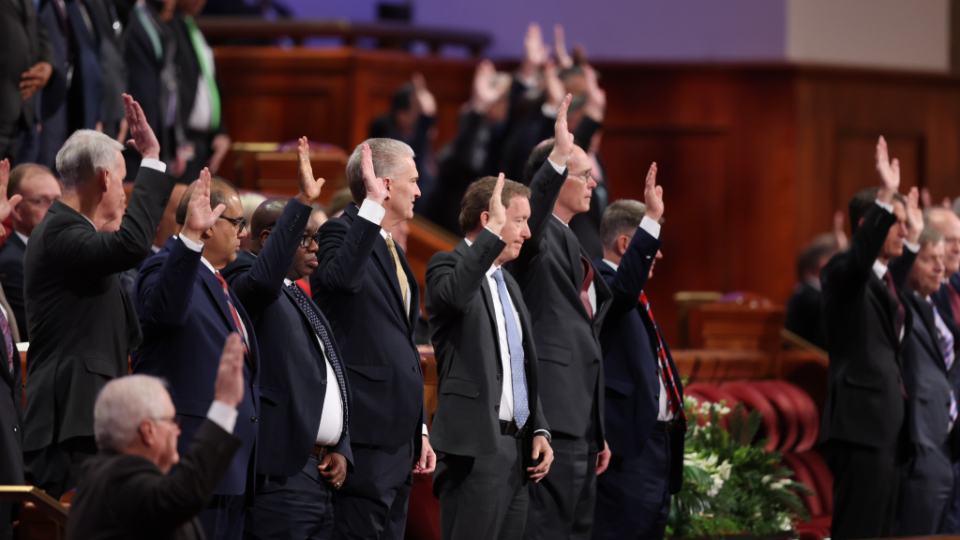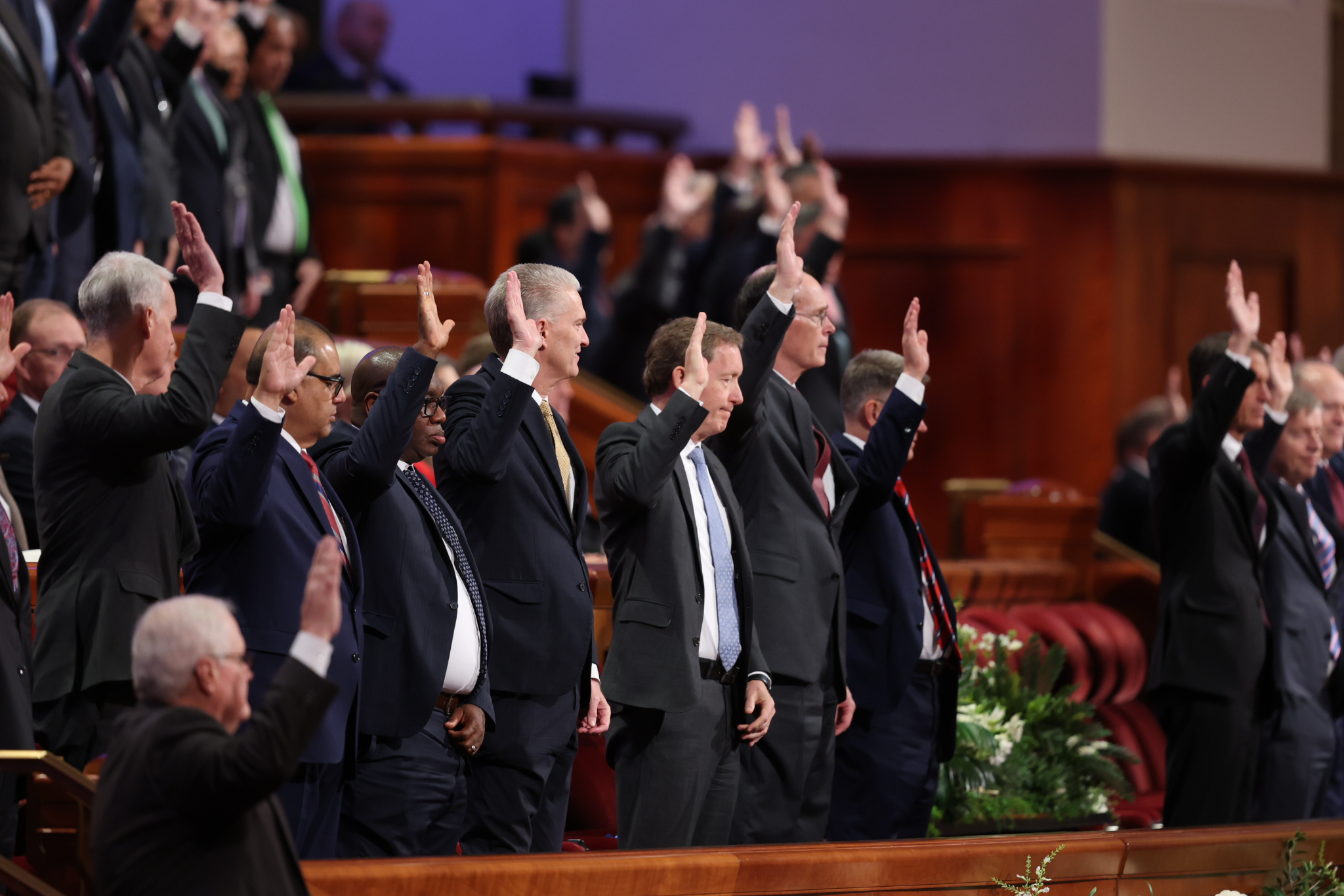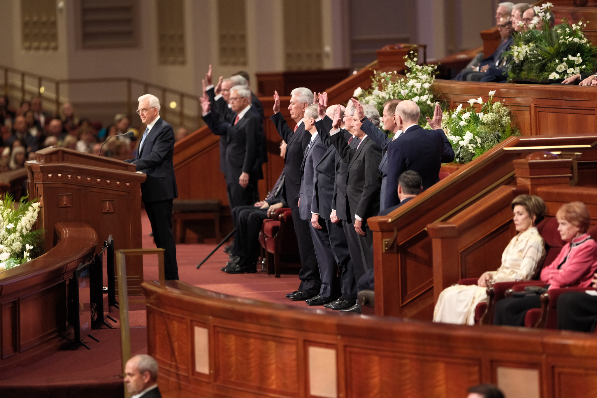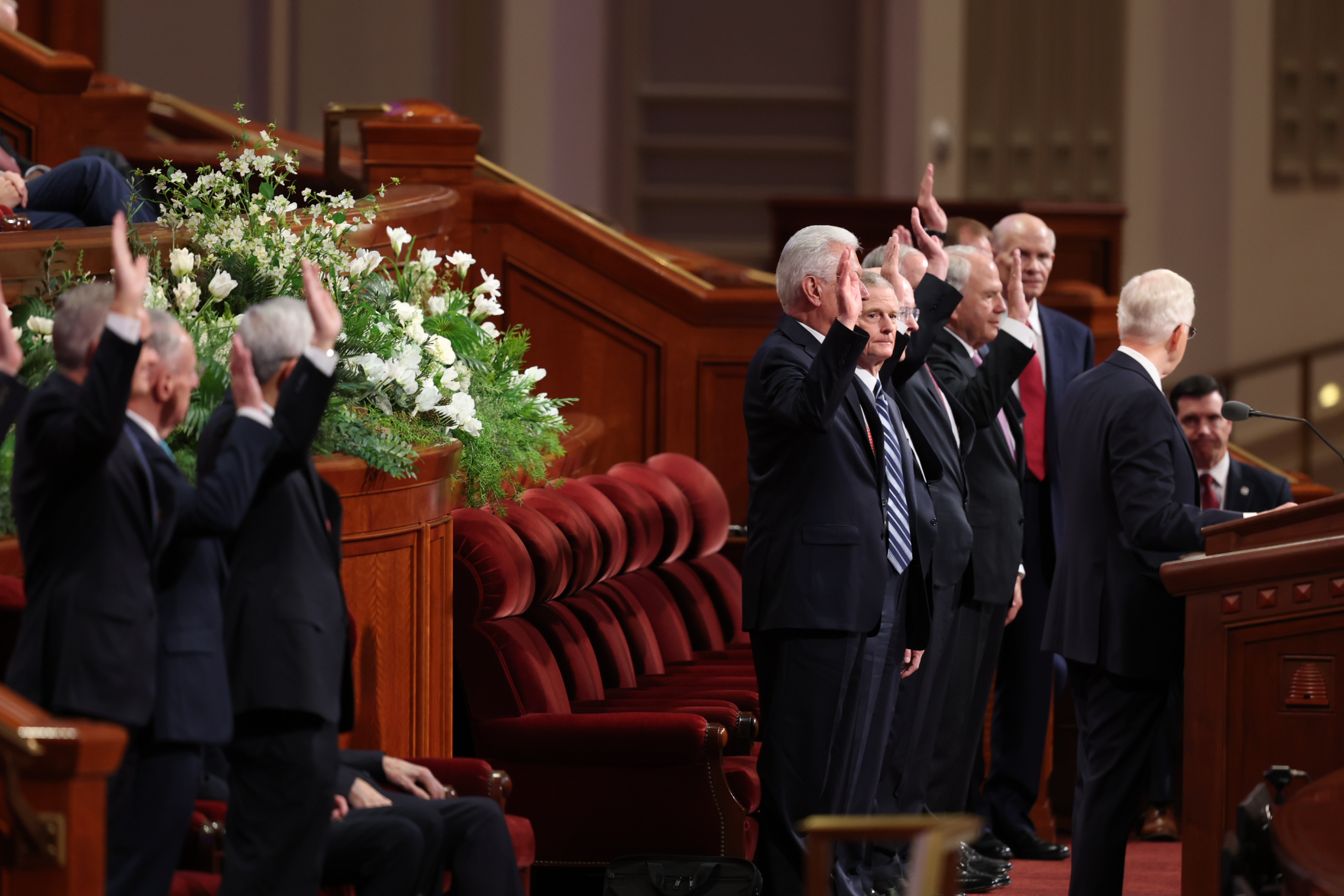 In Saturday’s solemn assembly, Latter-day Saints voted by quorums and groups to sustain members of the Church’s senior leadership.