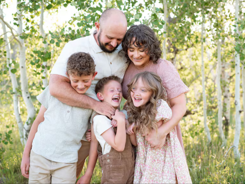 Angie Killian and her husband, Derek Killian, smile with their children during family photos in Payson Canyon, Utah, in 2024. Photo provided by Grace King, courtesy of Church News.All rights reserved.‘Anytime, Anywhere’