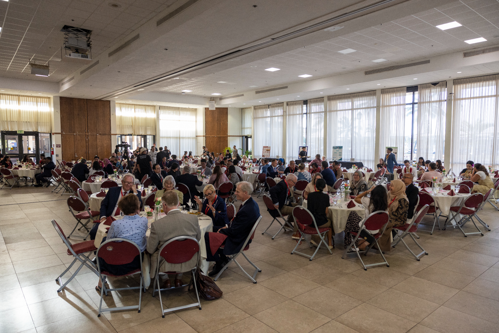 Panelists speak at a welcome dinner at a religious freedom conference on the campus of Brigham Young University–Hawaii on April 22, 2025, to discuss the pursuit of peaceful and inclusive societies.A unique and culturally inspired feature of the conference was the “talanoa” gatherings, discussion sessions where students and community members engaged in meaningful dialogue with delegates. Four talanoa sessions took place, offering students the chance to connect with leaders from India, Indonesia, Laos, Malaysia, Myanmar, the Philippines, Singapore, Thailand and Vietnam. These informal, face-to-face conversations allowed students and delegates to discuss pressing issues, future goals, and interfaith questions. Delegates even asked students about their own faith, leading to mutual understanding and strengthened connections. Many described the talanoa sessions as a highlight of the conference.