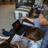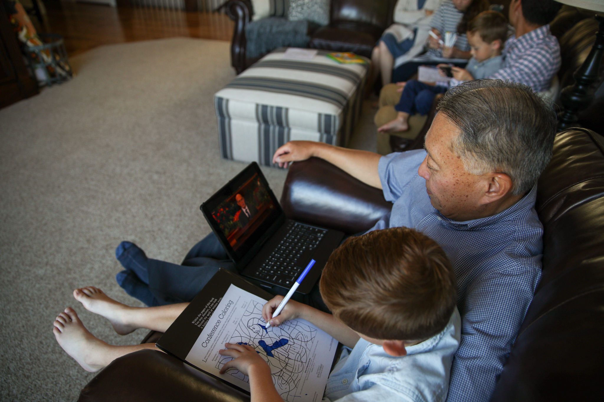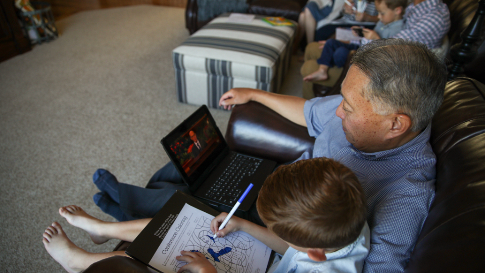A young family from Trinidad & Tobago, watches the afternoon session of general conference on Saturday, October 2, 2021. 2021 by Intellectual Reserve, Inc. All rights reserved.