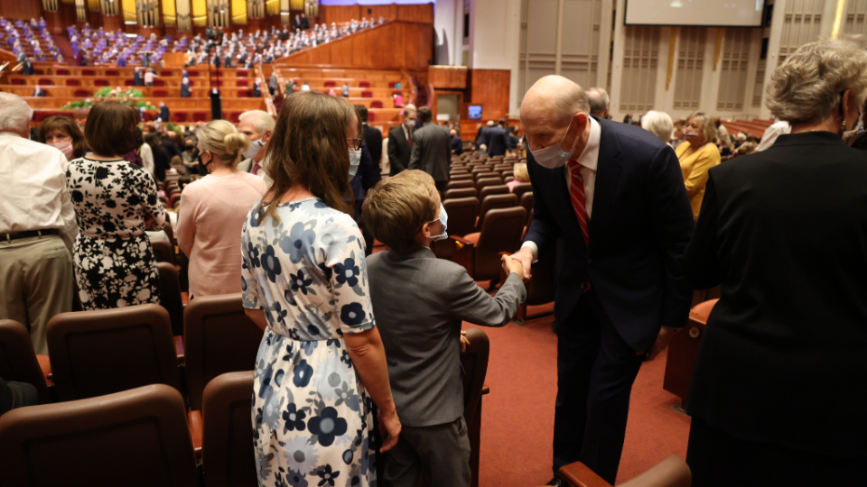 The Sunday afternoon session concluded the October 2021 general conference of The Church of Jesus Christ of Latter-day Saints, and marked a return to the Conference Center auditorium. The session’s speakers included four of the General Authority Seventies sustained in April, and several shared ways to look to the Savior and weather life’s storms.