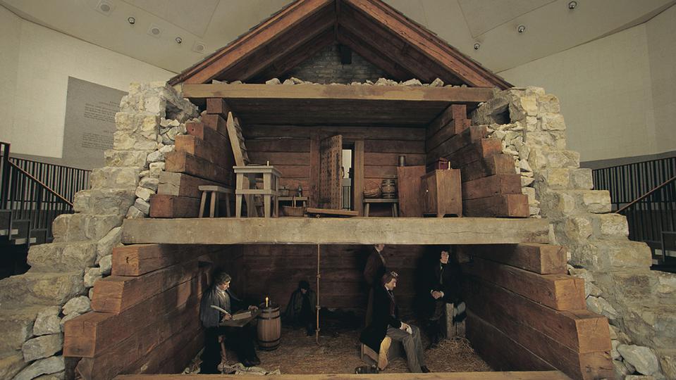 Joseph Smith and his companions were behind bars in Liberty Jail from December to April. The crude structure stood two stories high with outer walls and an inner wall that combined to create a four-foot-thick barrier and a single trap door that led to the dungeon below the first floor. The conditions were deplorable, the air was putrid and the dungeon was not suitable for a fire. The structure had only bars to cover the two open windows. Frigid winter temperatures chilled the suffering men to the bone. Hyrum Smith said of his incarceration that the jail had a “sticky smell” and the bad food “vomited us almost to death.”