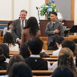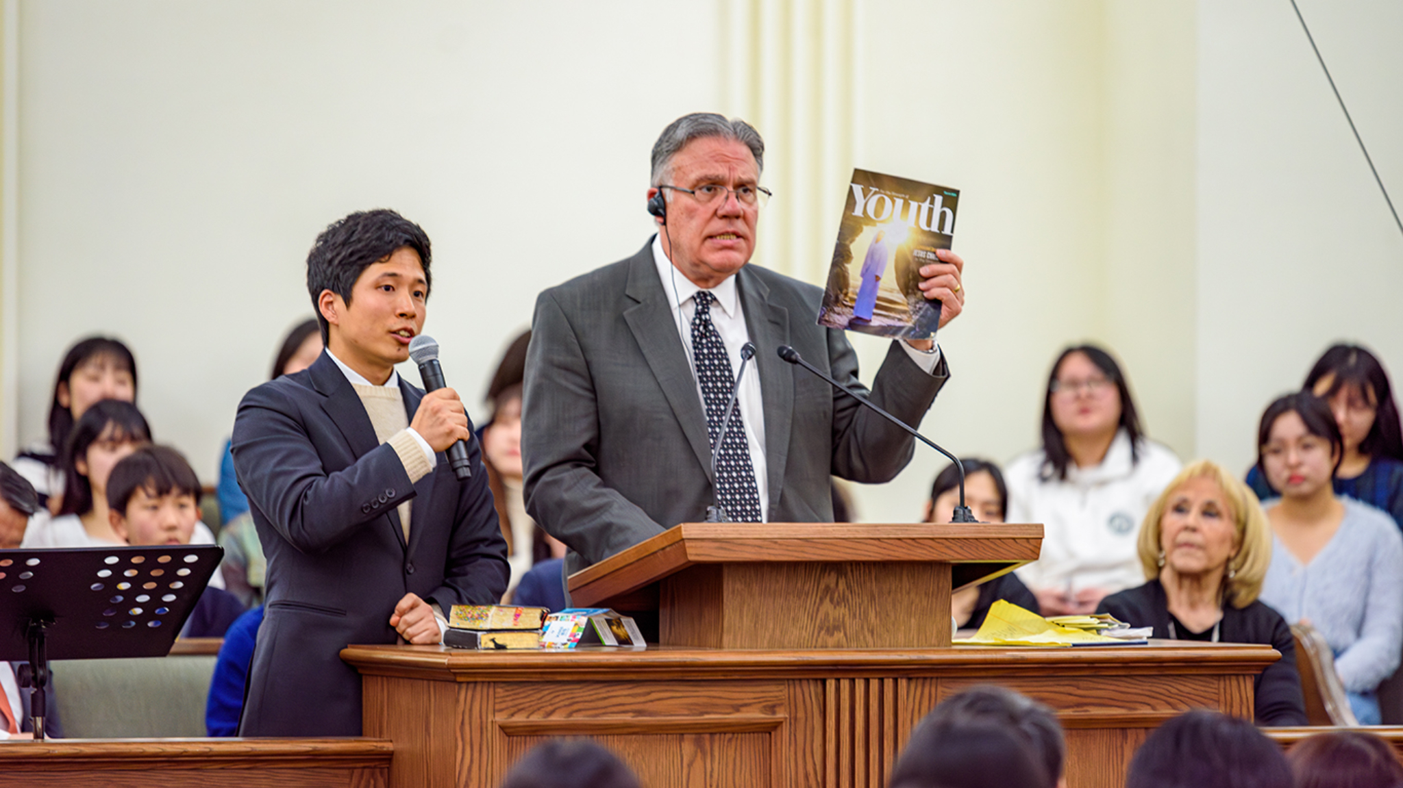 The two leaders also spoke at a youth devotional presided by Elder Takashi Wada, a General Authority Seventy and President of the Asia North Area, that was broadcast to youth and parents throughout Japan on March 10. Brother Wilcox encouraged youth to attend For the Strength of Youth (FSY) this summer. “You will discover that fun and the gospel can go together,” he said. “You will feel Heavenly Father’s love.”