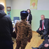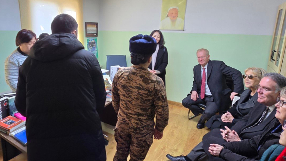 Brother Wilcox and his wife, also accompanied Elder J. Kimo Esplin, Second Counselor in the Asia North Area, as he visited the Children’s Special Education and Nurturing Center on March 14, where the Deseret International Charities is providing humanitarian aid to assist the youth there. After helping to distribute books, he told the children that God loved them and they were not alone. The young people sang a Mongolian song, and in turn, the Church representatives sang “I Am a Child of God” to them.