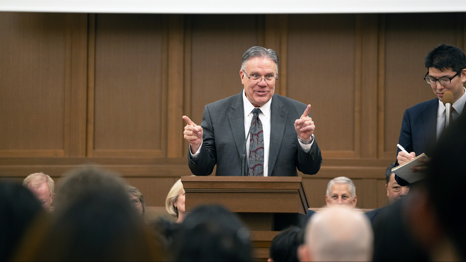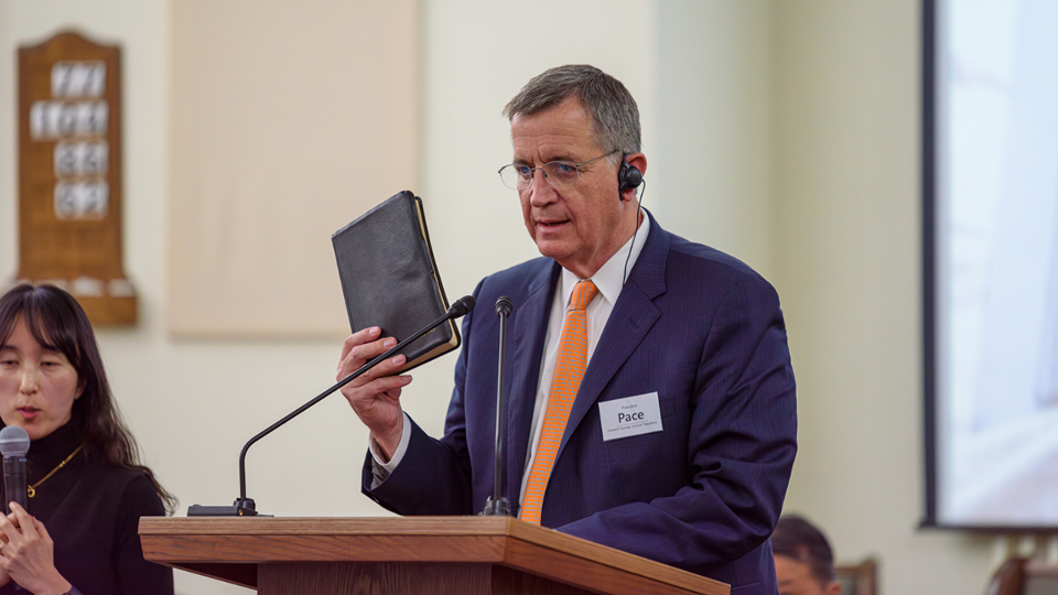 Sunday School General President Mark L. Pace speaks to teachers and leaders across Korea during a training devotional on March 14, 2024. 2024 by Intellectual Reserve, Inc. All rights reserved.Cheong Seong Kyeong from the Anyang Ward said, “I’m reminded again of the importance of learning and teaching not with my head, but with the feeling of the Holy Ghost, guided by the Spirit.”