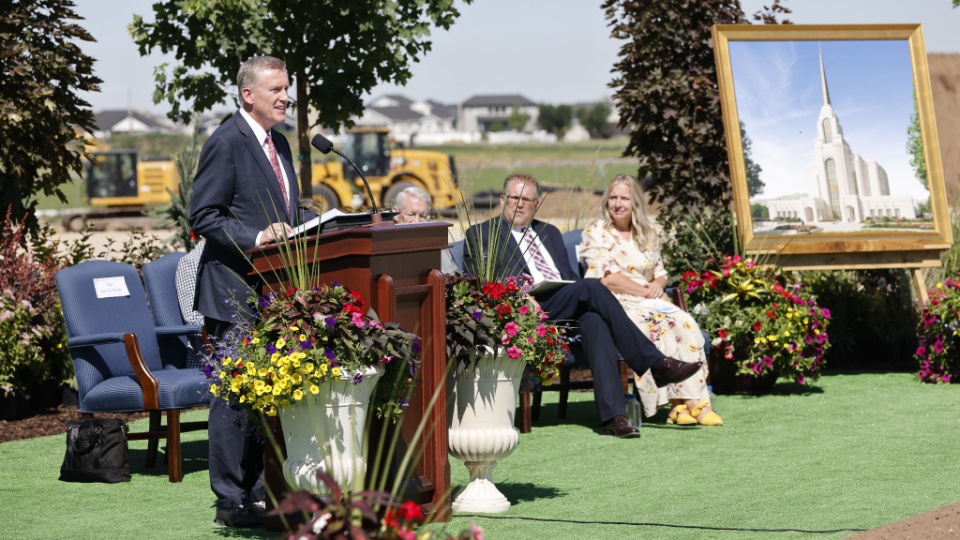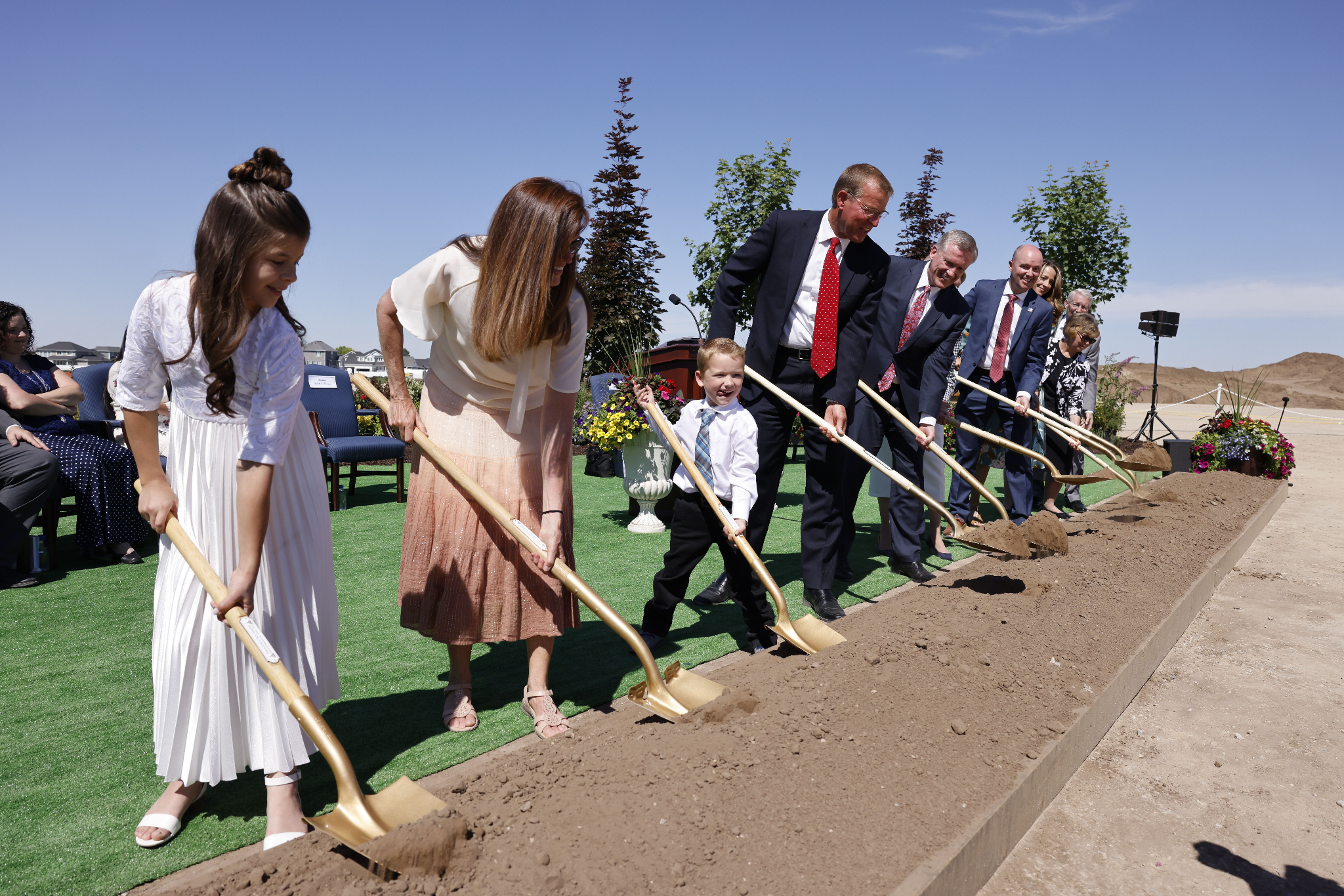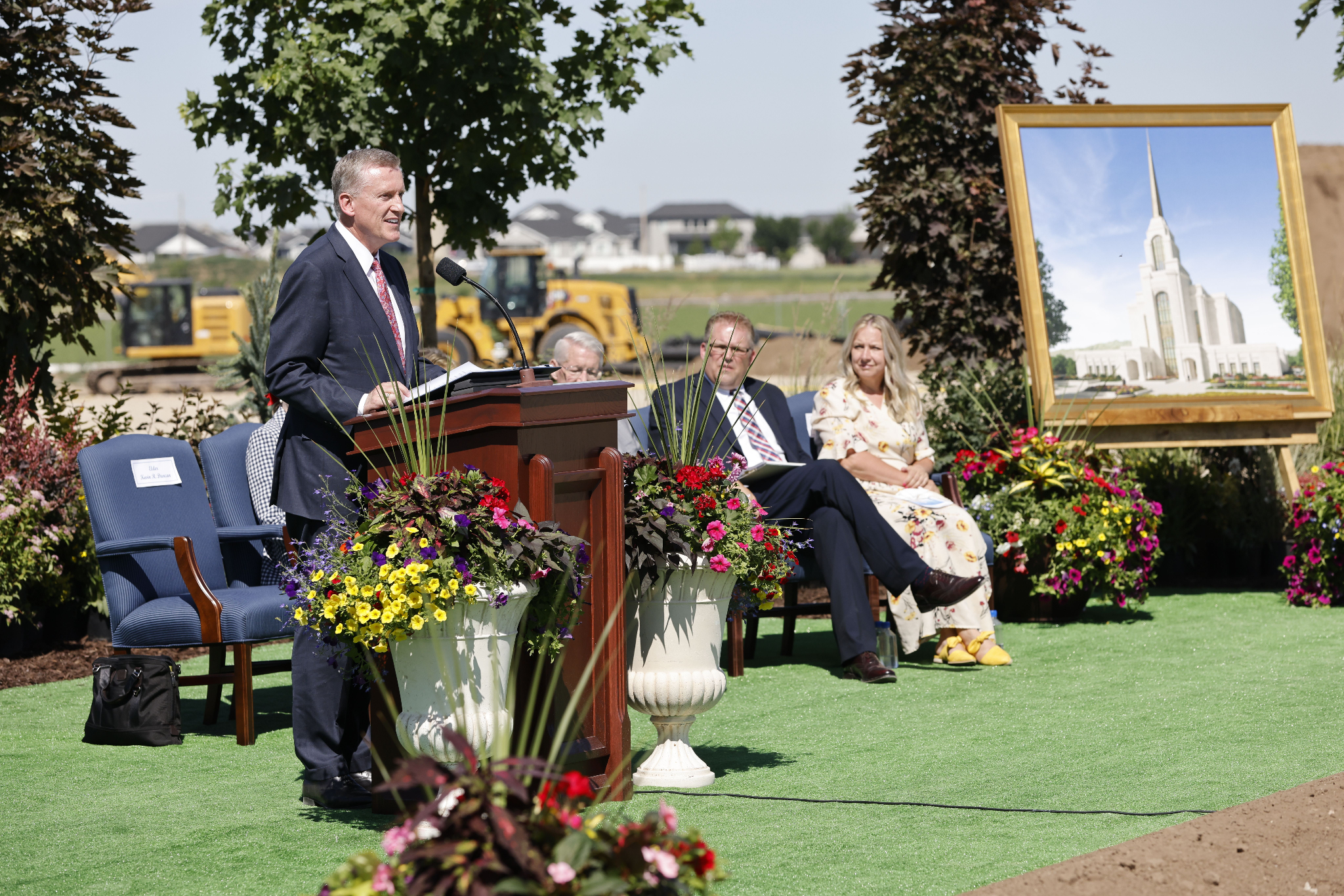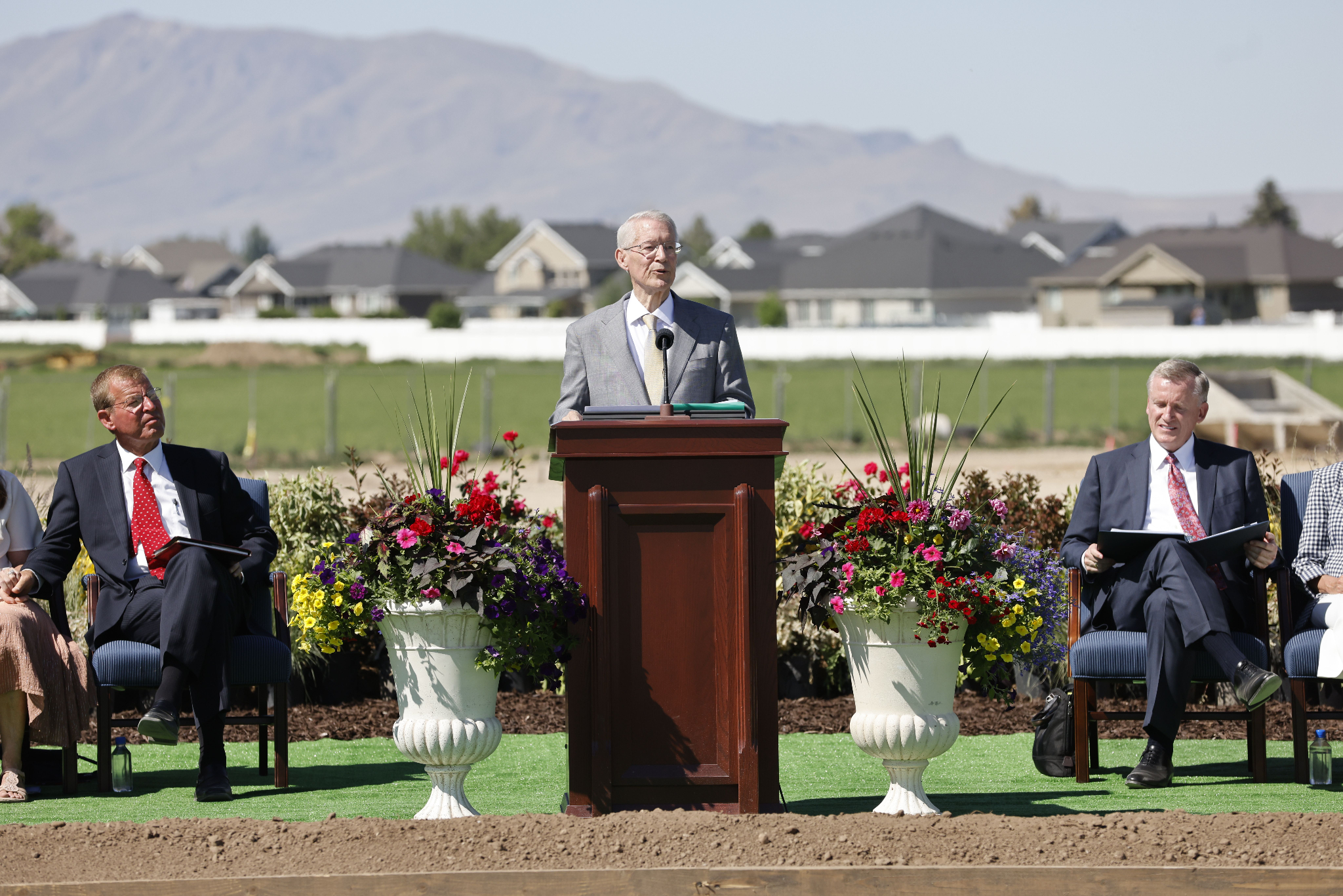 “I am very familiar with these fields where we stand, where we are gathered today. From this temple site, I can see the barn roof of my childhood home,” said Elder Duncan. “Some of you are new to this area, but this is your home too. Whether you are a longtime resident, or a ‘new pioneer,’ this temple will be your temple.”