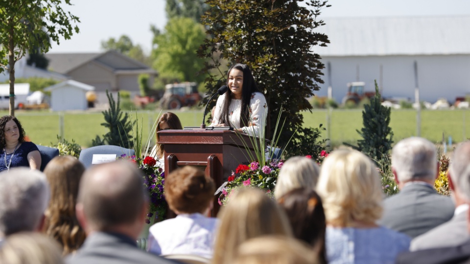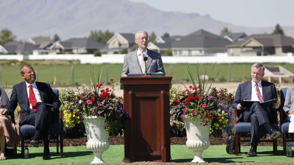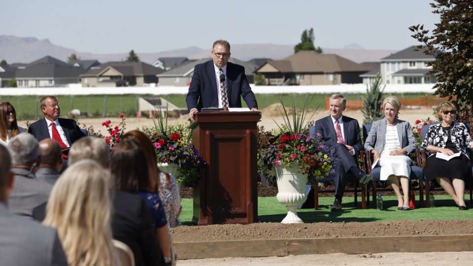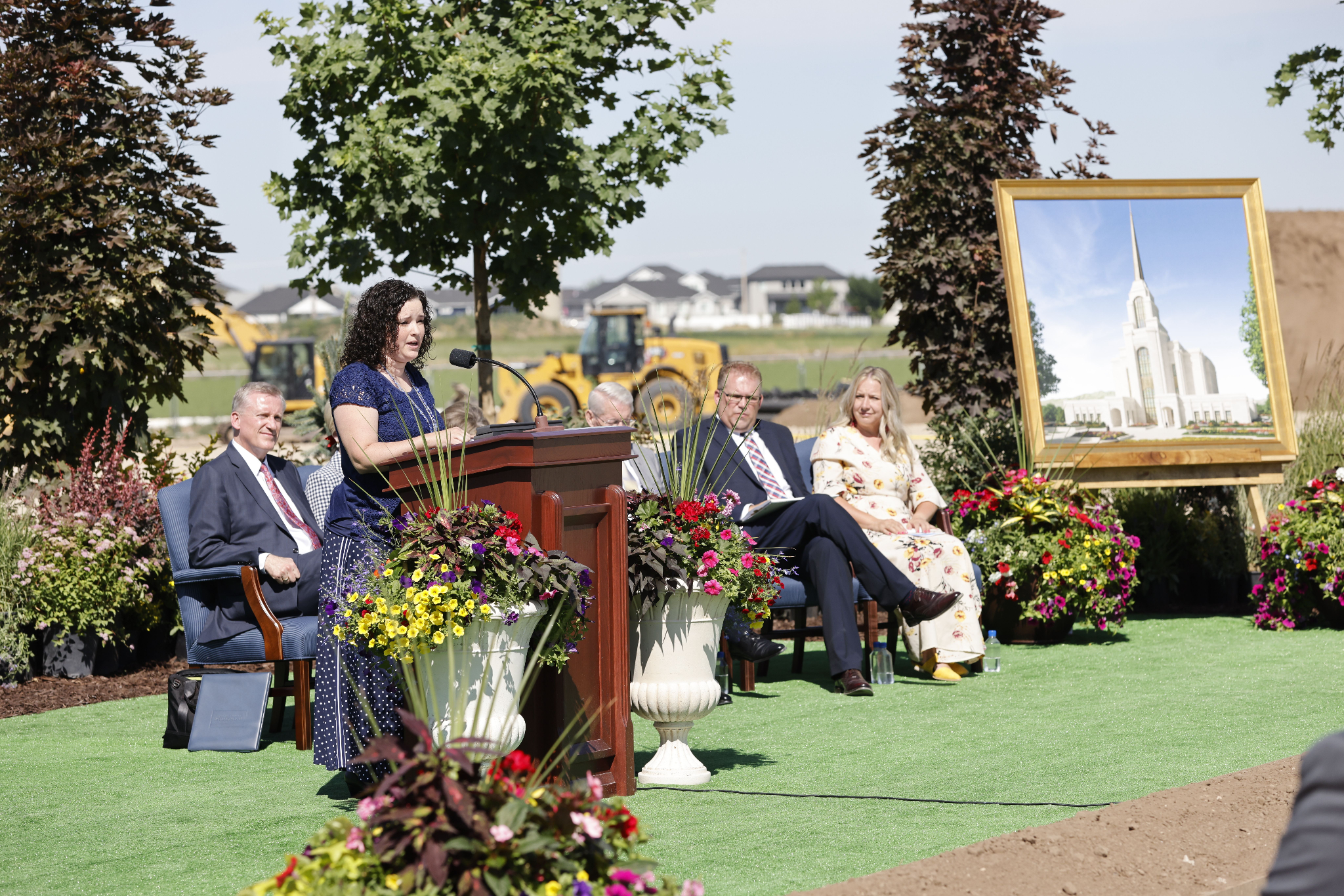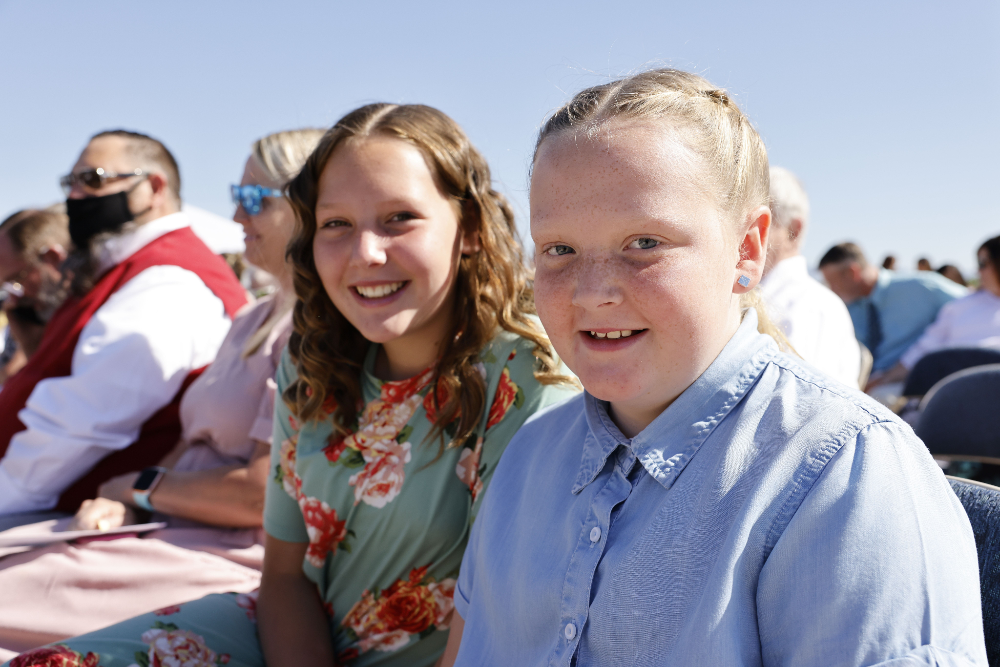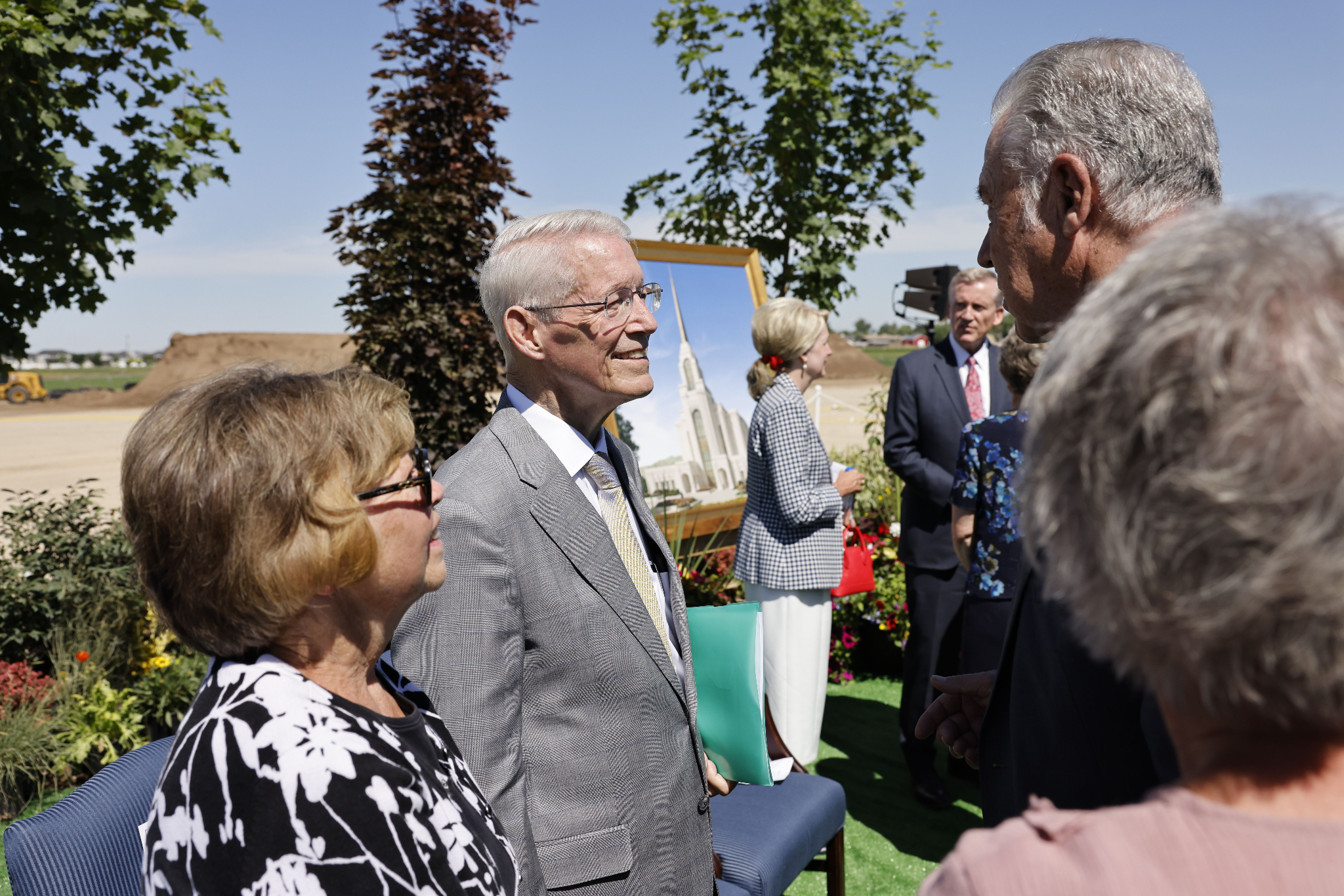 “I am very familiar with these fields where we stand, where we are gathered today. From this temple site, I can see the barn roof of my childhood home,” said Elder Duncan. “Some of you are new to this area, but this is your home too. Whether you are a longtime resident, or a ‘new pioneer,’ this temple will be your temple.”
