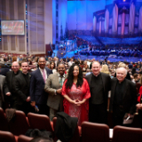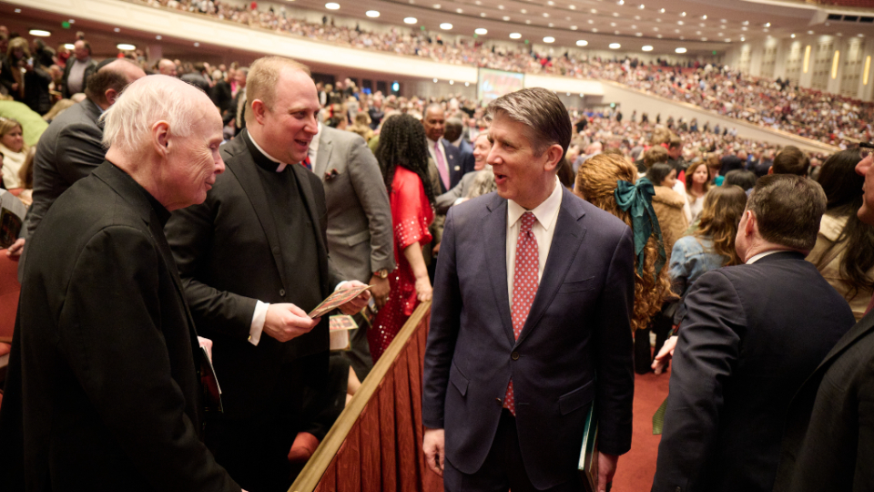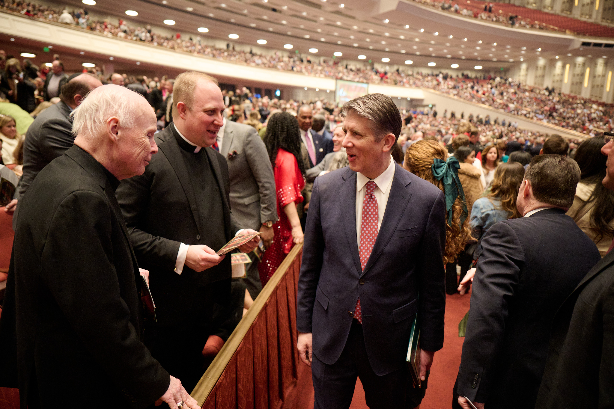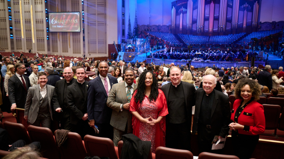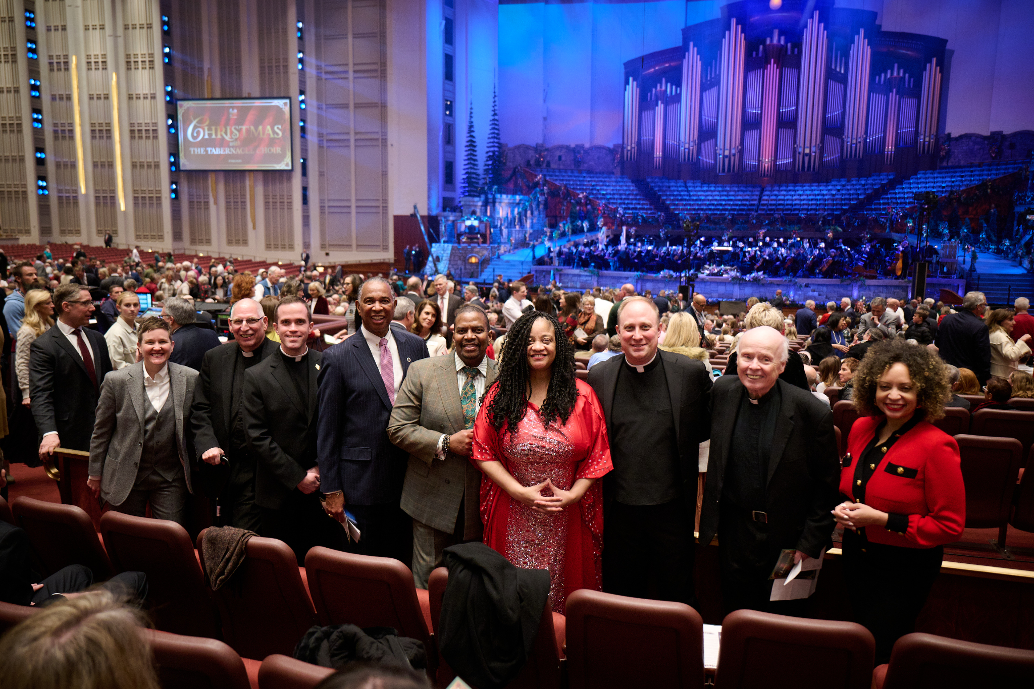 The Church of Jesus Christ invites government, interfaith and community leaders to the Christmas concerts every year to enjoy the world-class concert and celebrate the Christmas season. An interfaith delegation from New York City attended this year’s concert at the invitation of senior Church leaders. This group of influential religious leaders toured Church sites in northern Utah to learn more about the Latter-day Saint faith, including the Orem Utah Temple open house and the Church’s Welfare Square in Salt Lake City on Thursday, December 14.