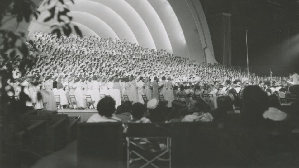 The Tabernacle Choir first performed at the Hollywood Bowl on July 28, 1926, to an estimated crowd of 15,000 people. The Choir returned to the Hollywood Bowl stage on August 20, 1941, and again on May 23, 1963.