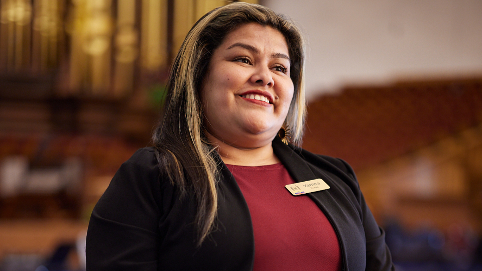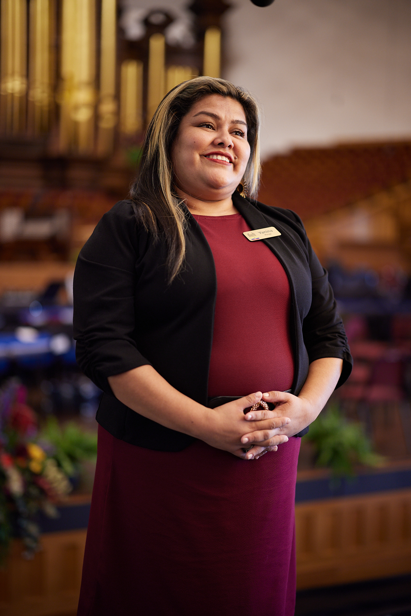 Hikari Harvey (center) of Japan is photographed with international choir participants in the Tabernacle on September 28, 2023. 2023 by Intellectual Reserve, Inc. All rights reserved.Idaliz Santiago, Puerto Rico: Idaliz lives in Trujillo Alto with her husband of 15 years along with their three children. Idaliz has a bachelor’s degree in electrical engineering and studied music and piano during her youth for six years. She has directed the women’s stake choir and the stake choir for 15 years.