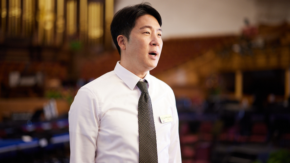 Tin Kin Lam, Hong Kong: Tin Kin and his wife are parents to a toddler son. Tin Kin was a fellow BYU–Hawaii graduate from the voice program with Hikari. An instrumentalist from the age of 9, he has been a music instructor for school bands and ensembles in elementary through high schools since his college graduation. He has also been a conductor for a local community choir.