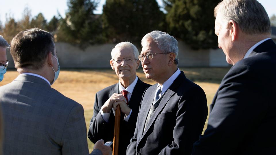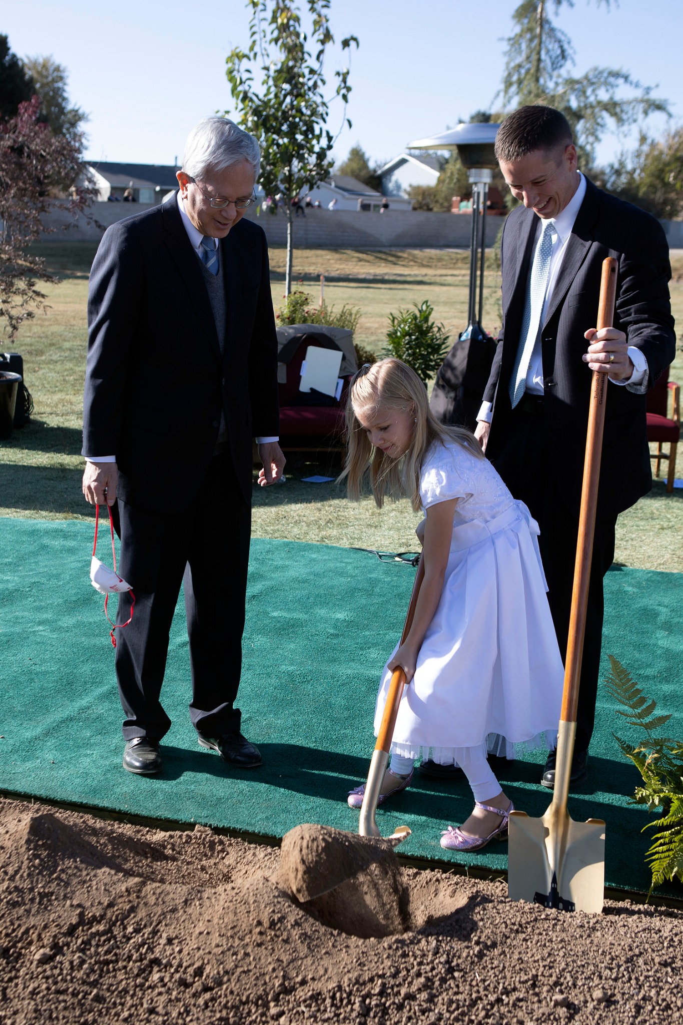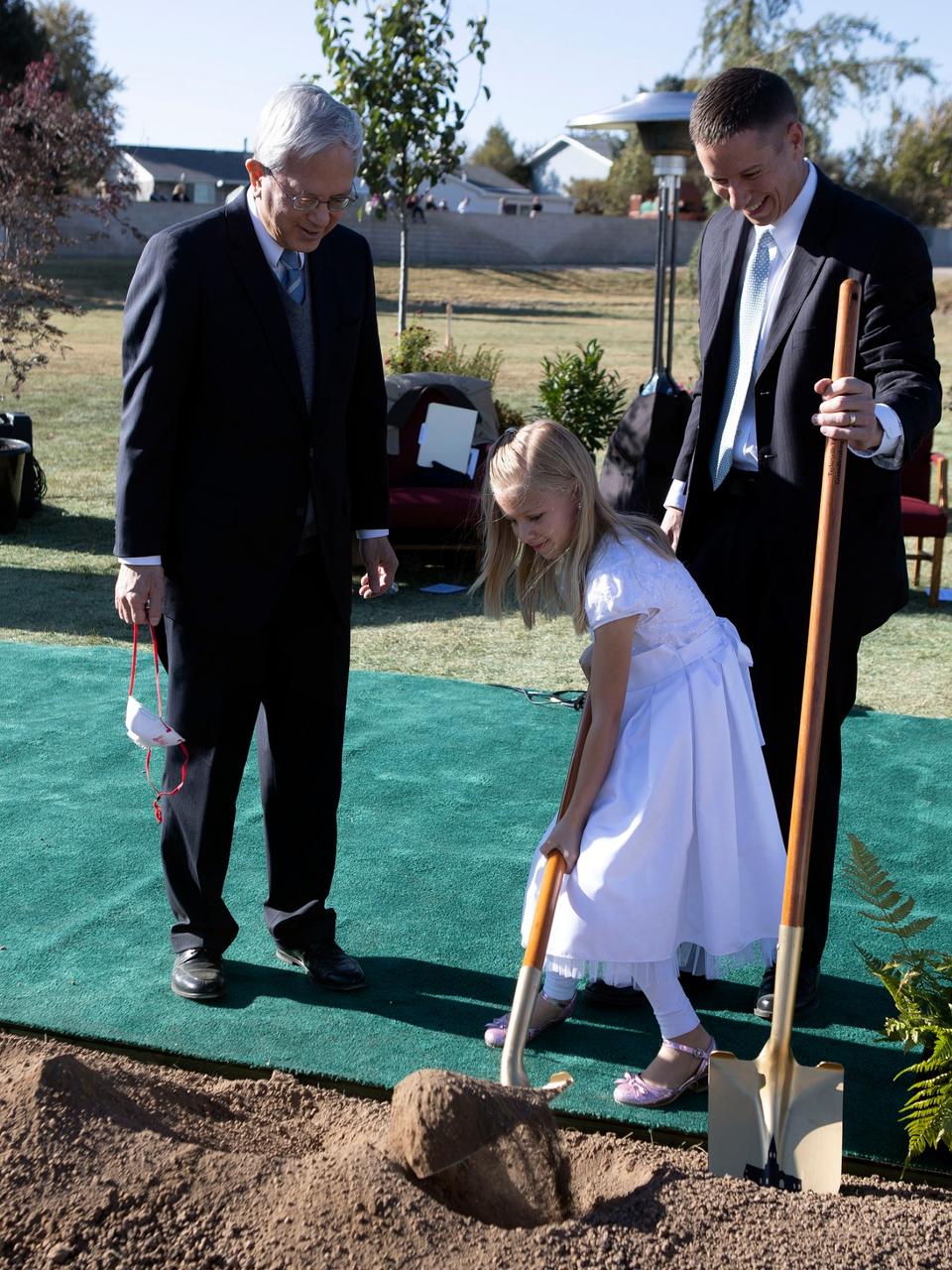 “By tradition, a temple groundbreaking includes a site dedication prayer and turning of the soil,” said Elder Gerrit W. Gong of the Quorum of the Twelve Apostles, who presided at the small gathering of Latter-day Saint leaders and invited guests. Local COVID-19 restrictions prevented a large-scale event.