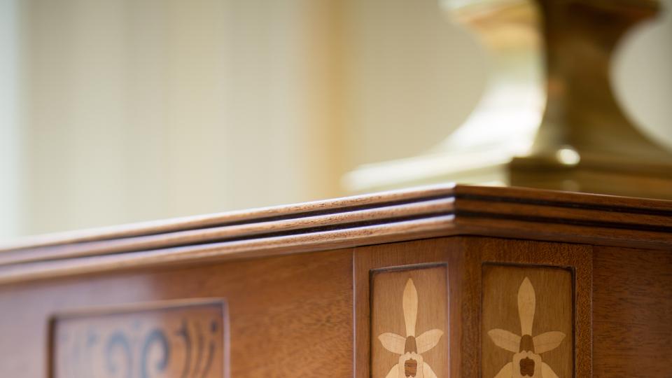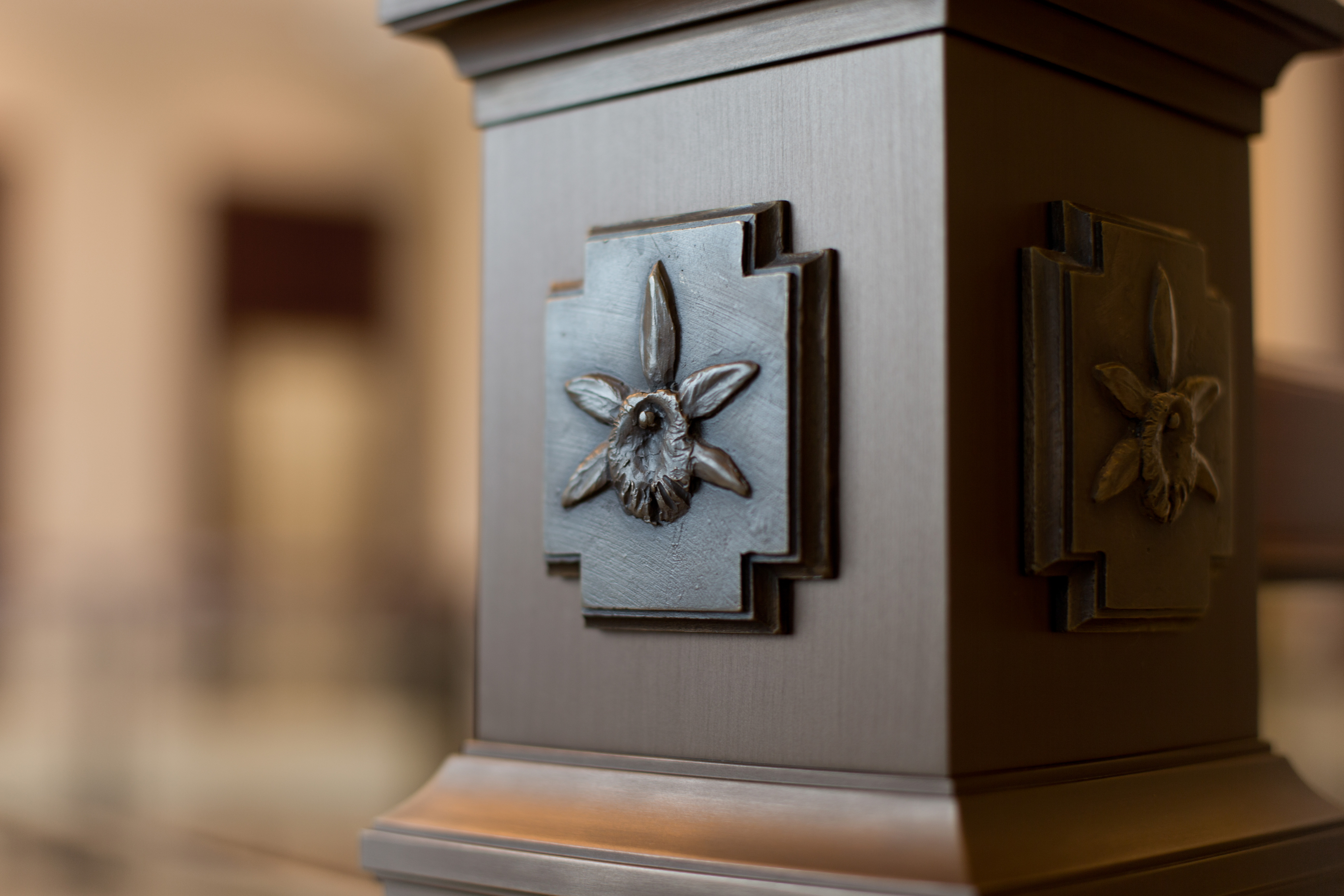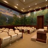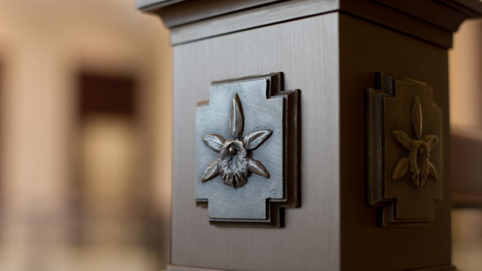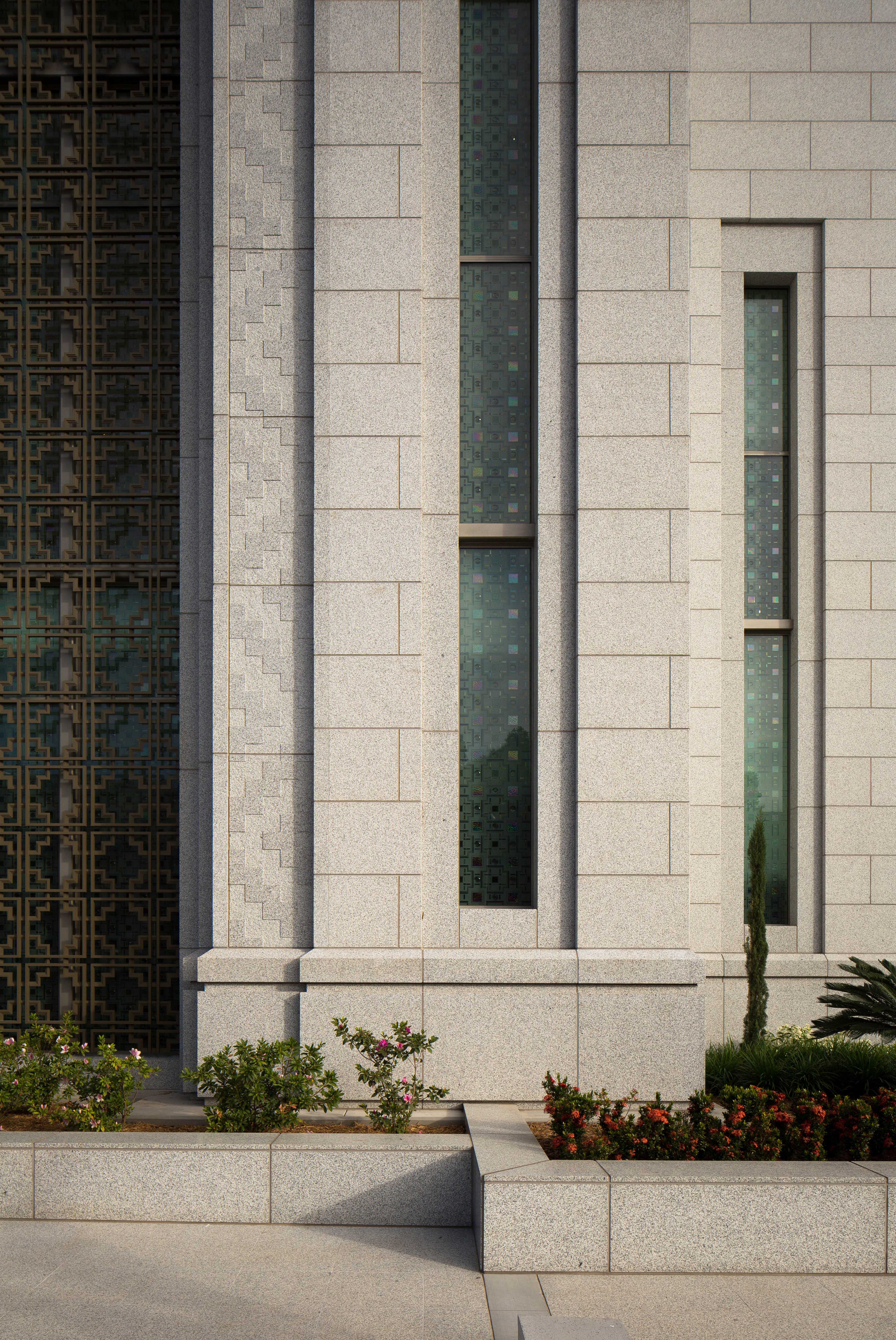 Exterior features of the temple include granite from China and art-glass windows with designs inspired by the Mayan culture, which are also included in interior features, together with original murals that depict Honduran landscapes. Motifs of the orchid, national flower of Honduras, are found on the furniture, doors and other places in the temple.