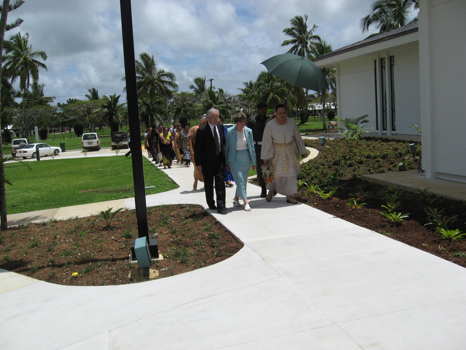 Hola was among the 40,000 visitors who attended the recent month-long open house for the newly renovated Tonga temple of The Church of Jesus Christ of Latter-day Saints. The number of visitors constitutes 40 percent of the total population of the island nation. The guests included Her Royal Highness Princess Pilolevu and Mrs. Ainise Sevele, wife of Tongan Prime Minister Feleti Sevele.