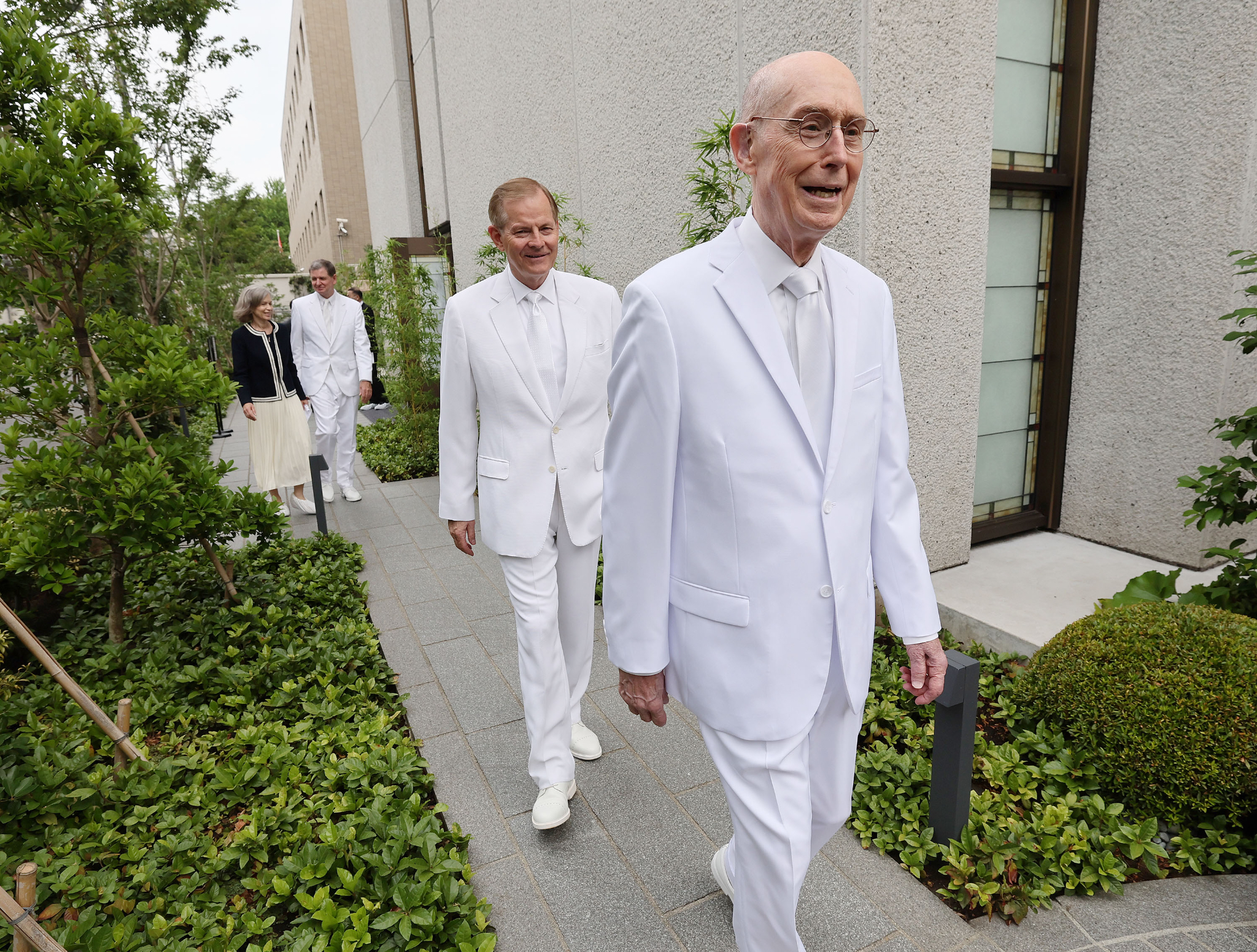 President Henry B. Eyring, of The Church of Jesus Christ of Latter-day Saints, and Elder Gary E. Stevenson, of the Quorum of the Twelve Apostles, during the Tokyo Japan Temple rededication in Tokyo on Sunday, July 3, 2022.June 27, 2022