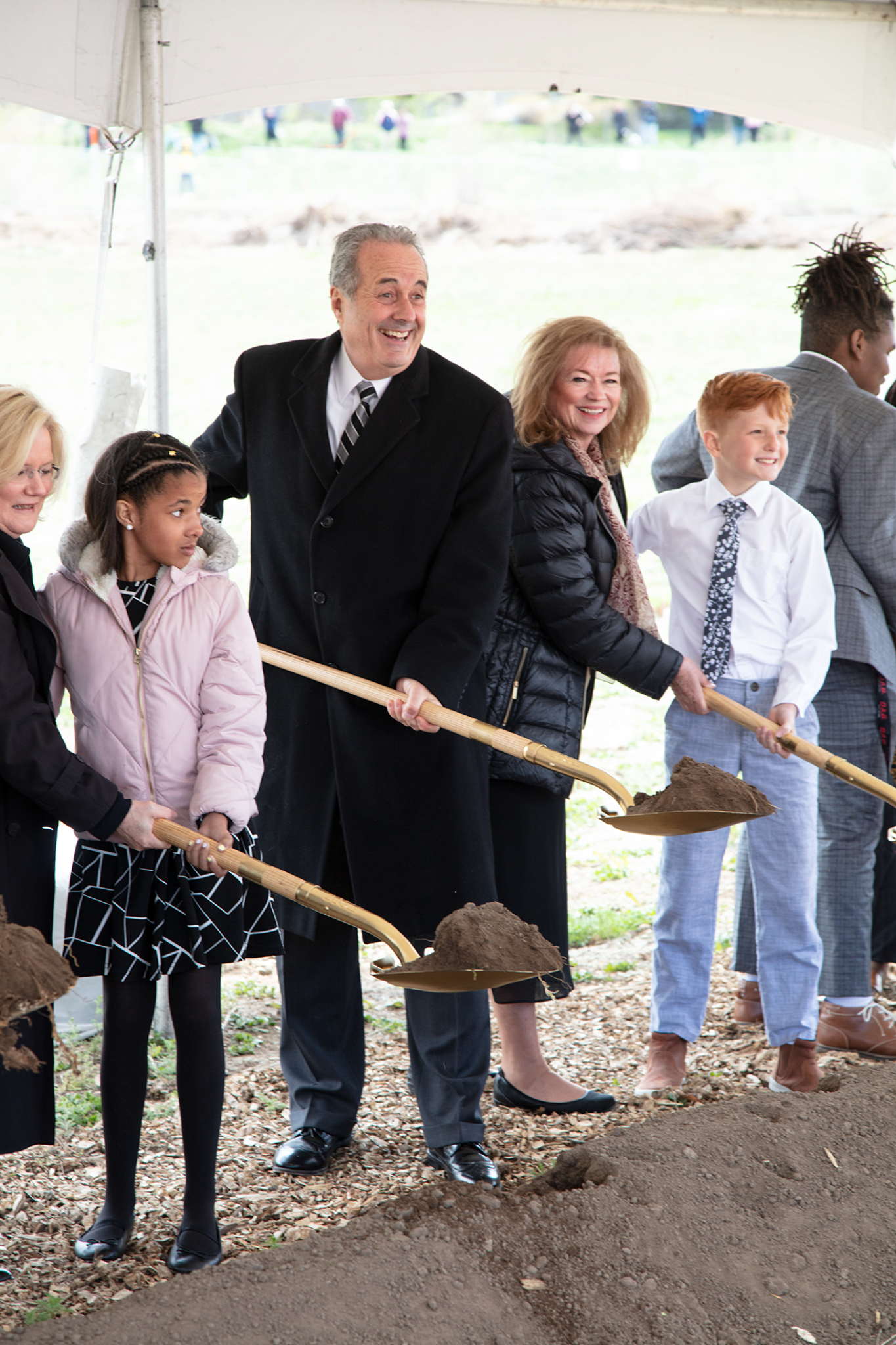 A small group of invited guests turn shovels of dirt at the groundbreaking for the Lindon Utah Temple in Lindon, Utah, on April 23, 2022.© 2022 by Intellectual Reserve, Inc. All rights reserved.April 18, 2022