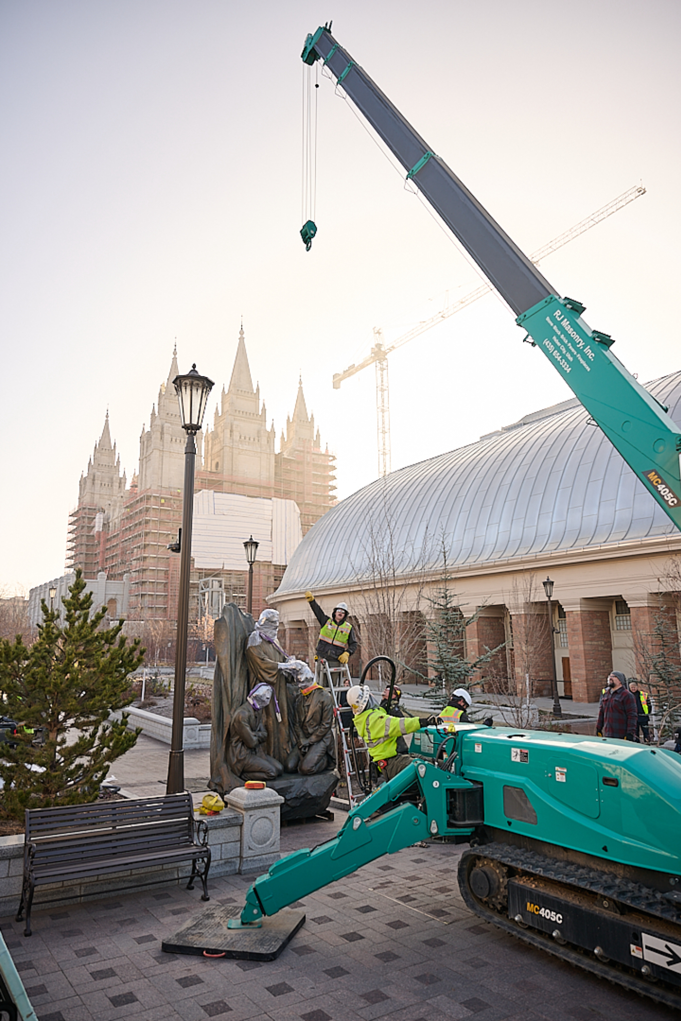 The “Restoration of the Sealing Keys” statue is installed on the northwest quadrant of Temple Square in Salt Lake City, Utah, on Thursday, January 15, 2026.2026 by Intellectual Reserve, Inc. All rights reserved.January 12