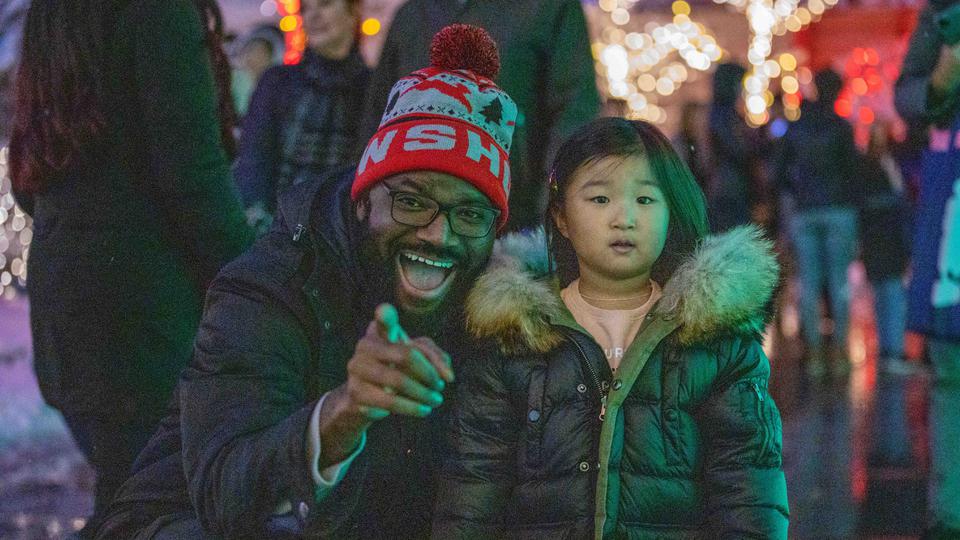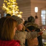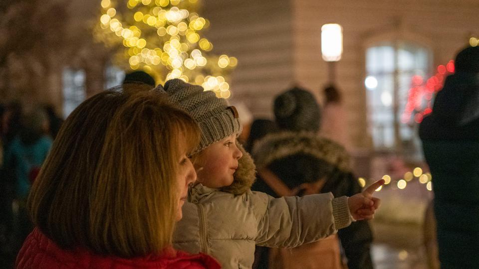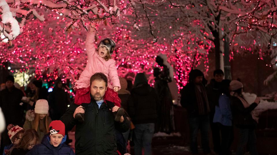 Families gather on historic Temple Square for the annual Christmas lighting.