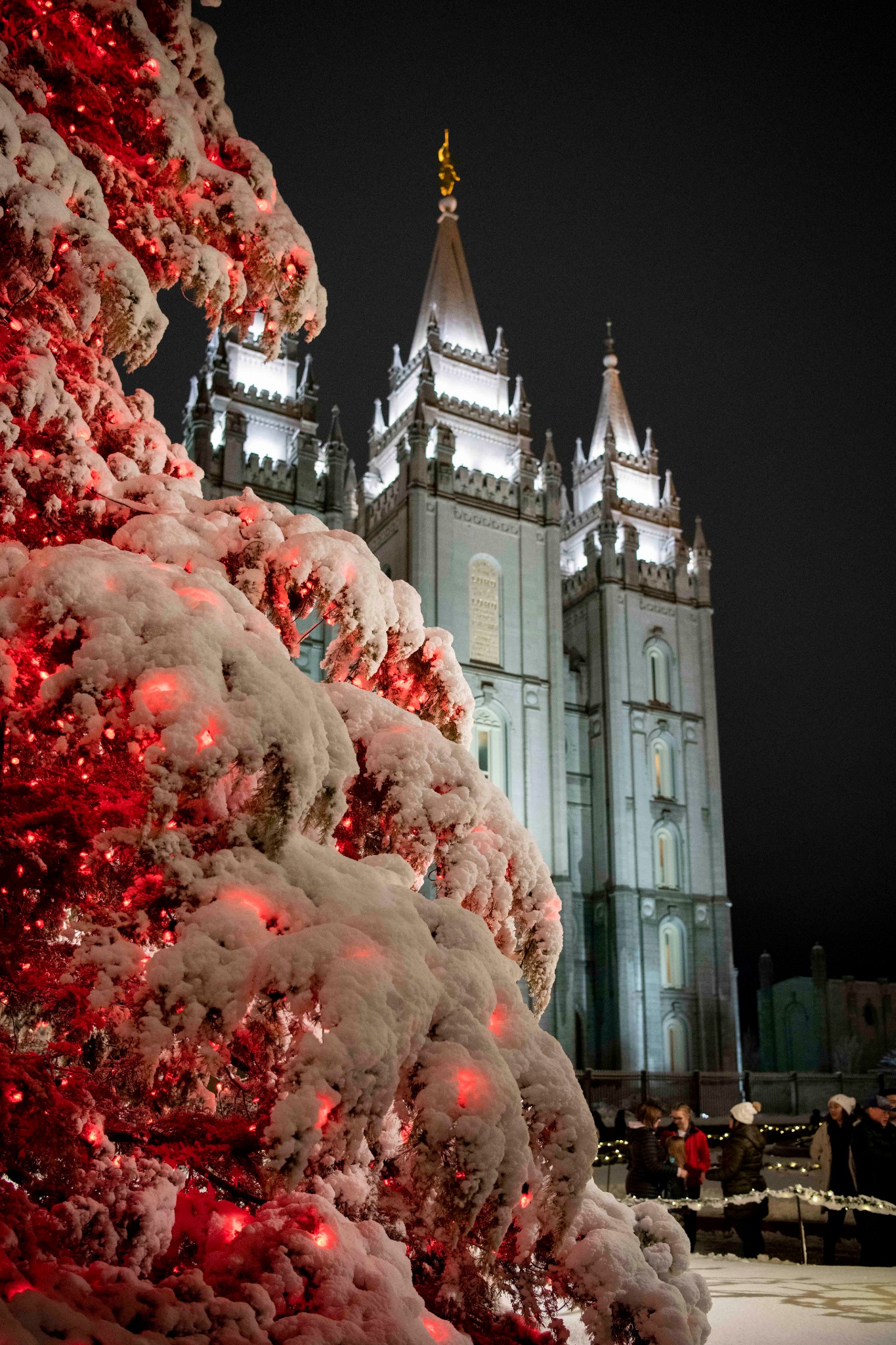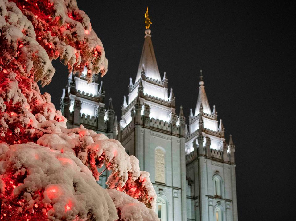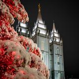 Christmas lights surround the Salt Lake Temple, the centerpiece of historic Temple Square.