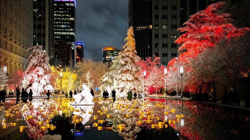 Visitors to historic Temple Square are dazzled by the Christmas lights.
