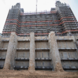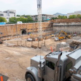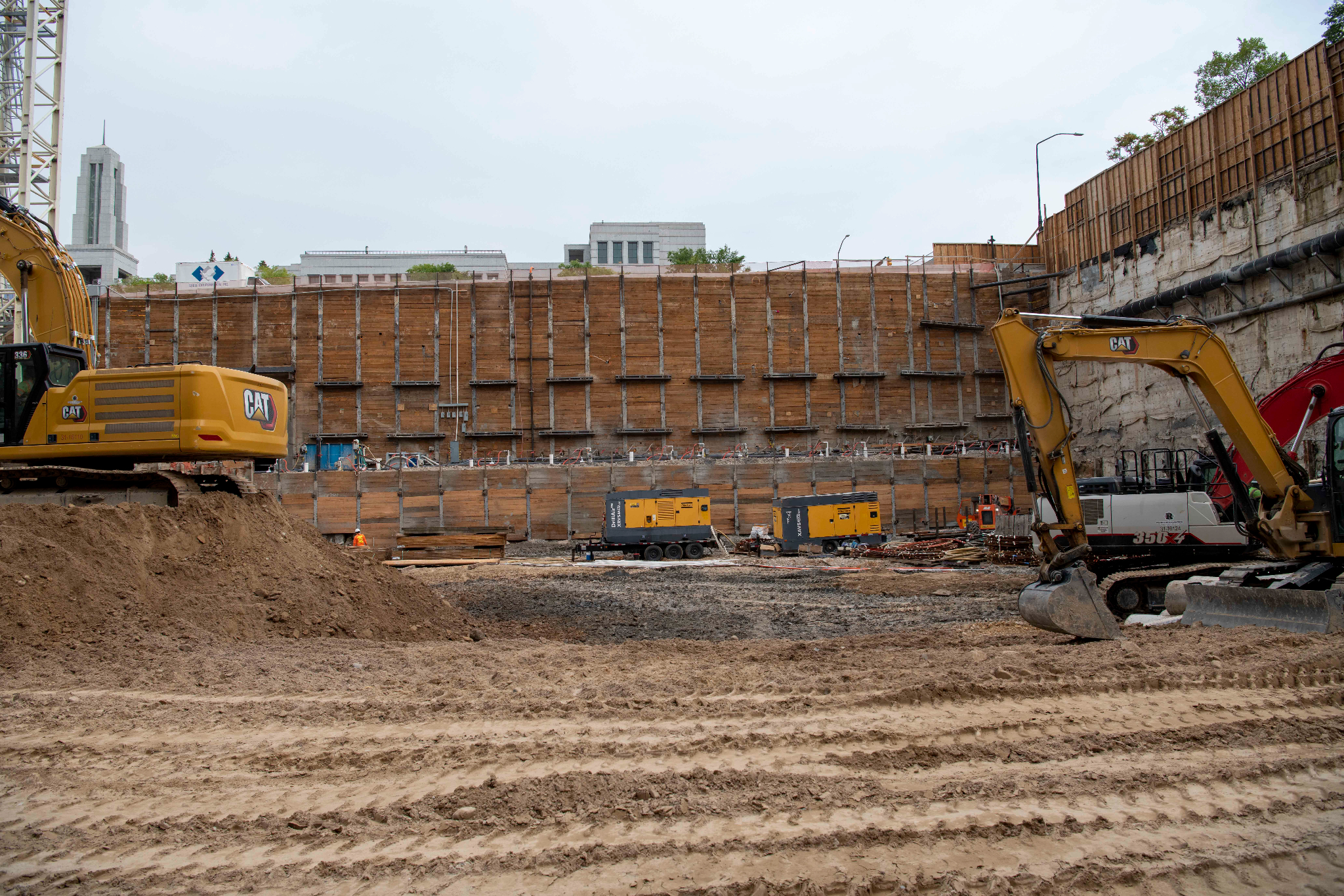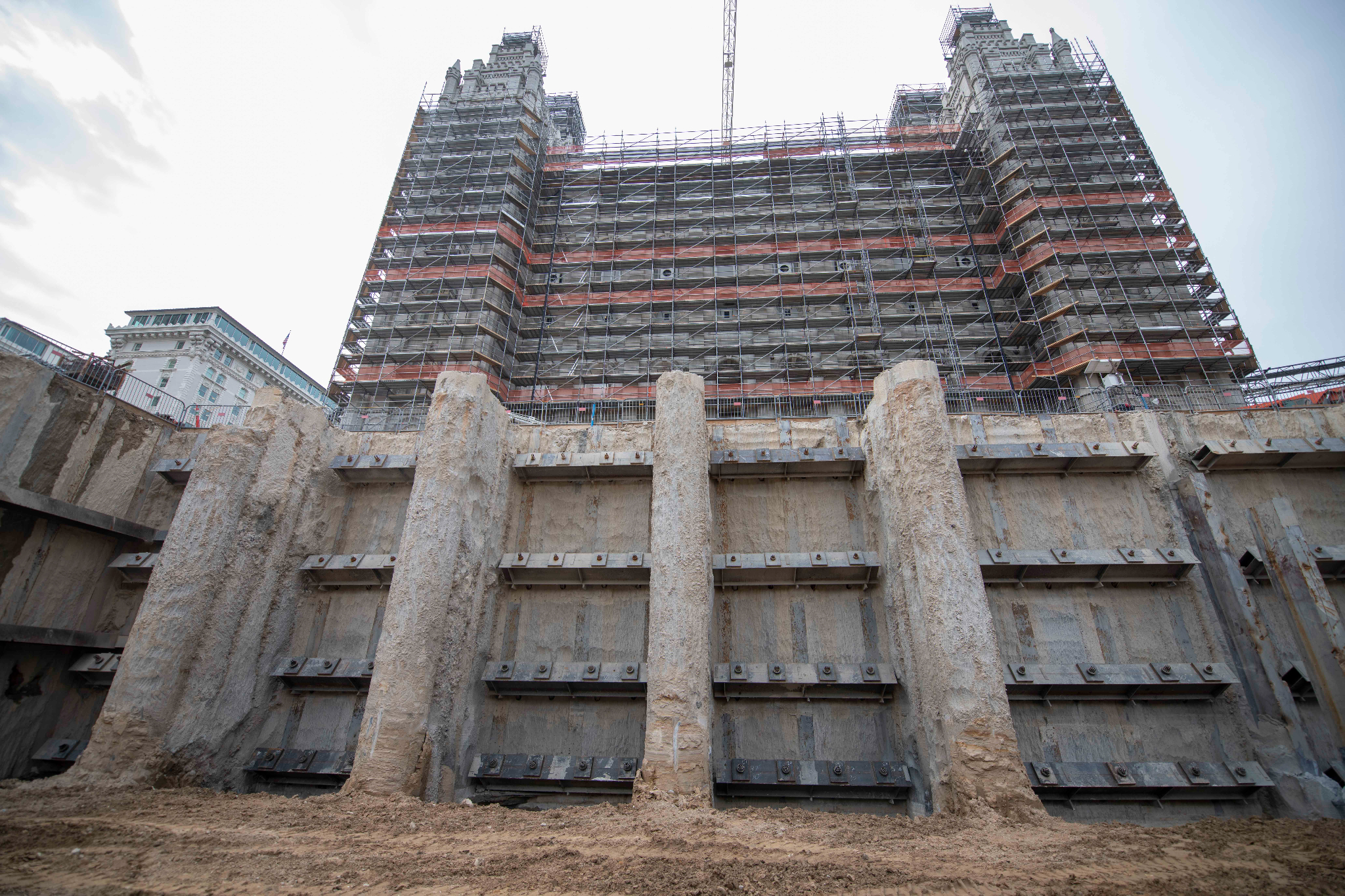 The secant wall surrounding the temple is uncovered to prepare for the three future floors underground, Salt Lake City, Utah, September 2021.© 2021 by Intellectual Reserve, Inc. All rights reserved.