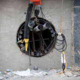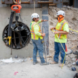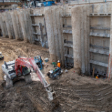 Members of the renovation team dig to prepare the secant wall for new underground levels that will be added to the temple, Salt Lake City, Utah, September 2021.© 2021 by Intellectual Reserve, Inc. All rights reserved.
