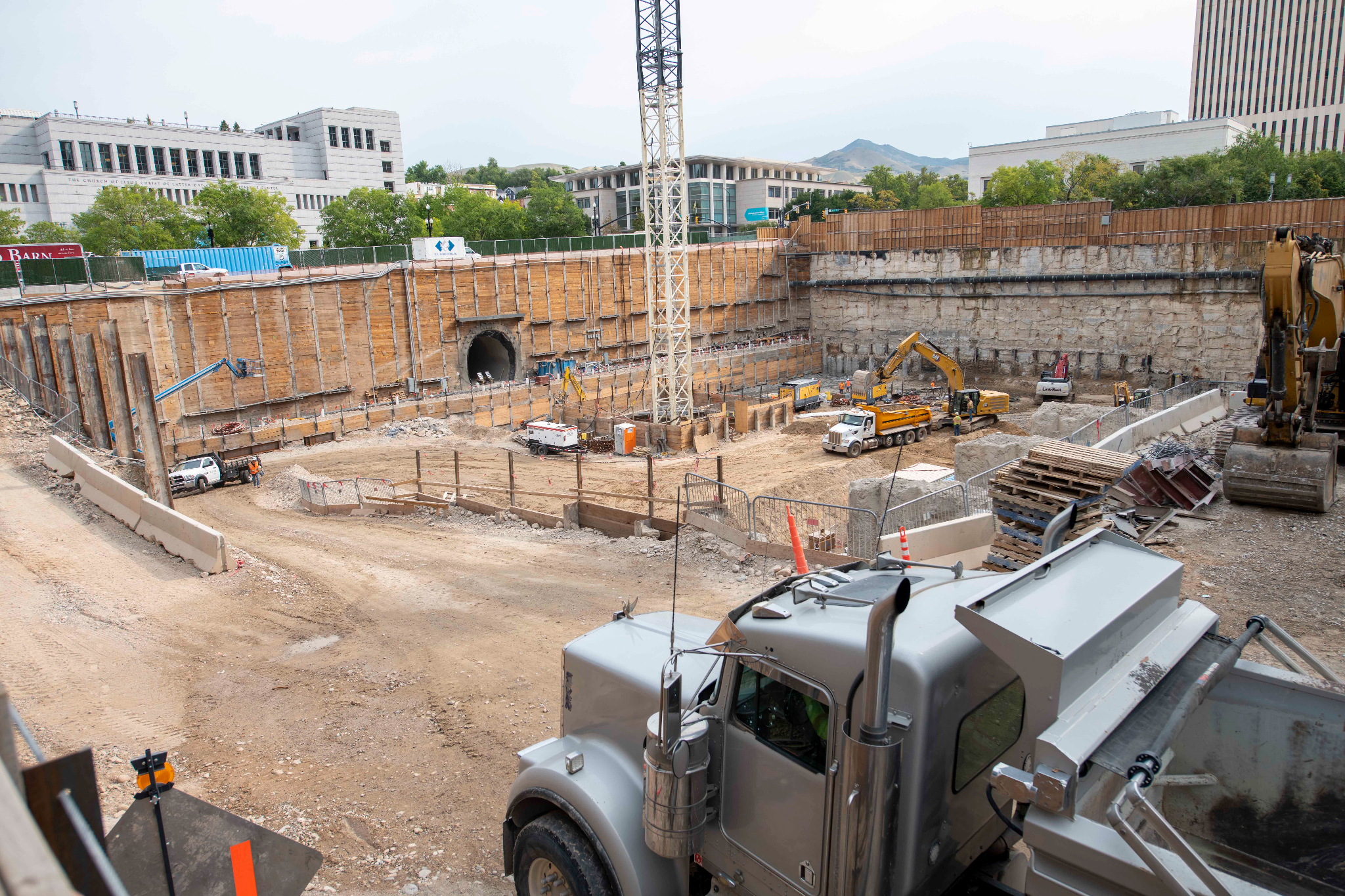 Crews excavate past the level of the entrance tunnel on the north side of the temple, Salt Lake City, Utah, September 2021.© 2021 by Intellectual Reserve, Inc. All rights reserved.