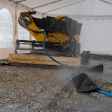 The “broom” machine then removes the concrete. This machine has a large rotating brush that cleans debris from the concrete surface so that it can be repaired with new concrete.