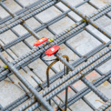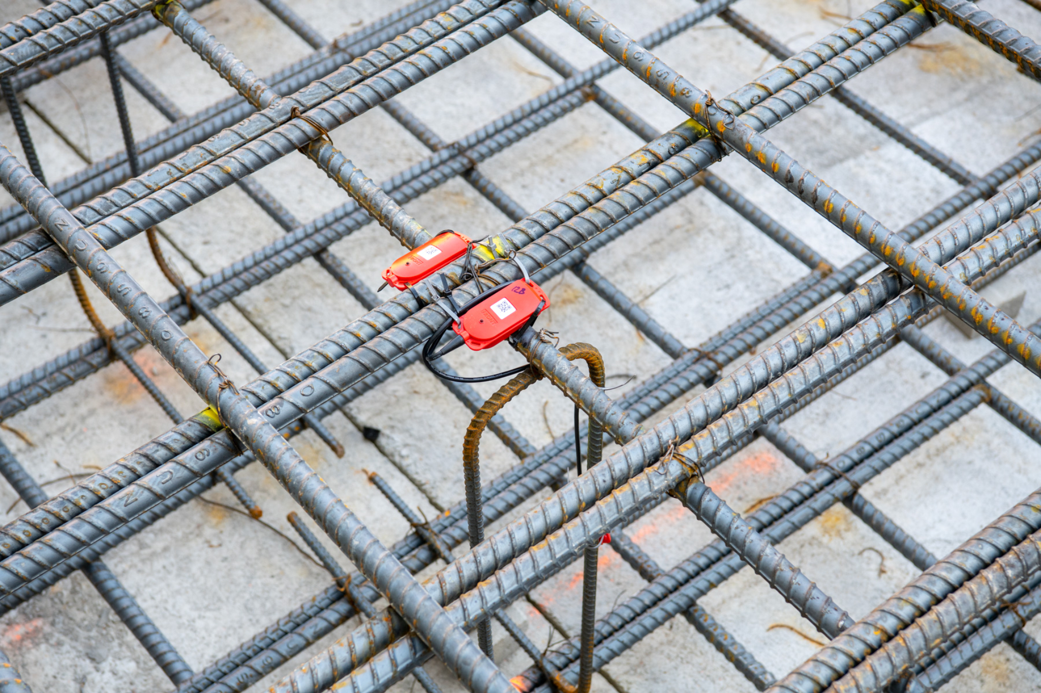 The red sensors monitor temperature before and after the pour to ensure proper curing and strengthening of the concrete.