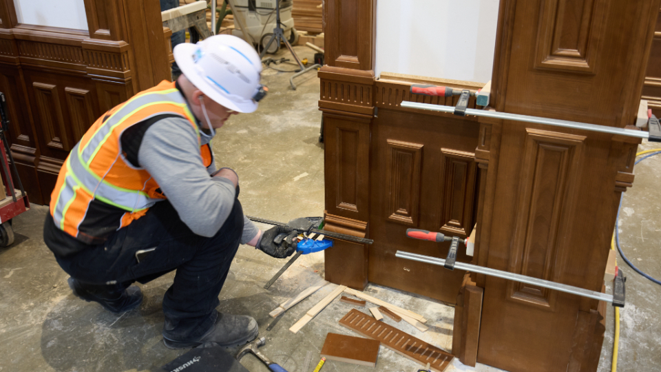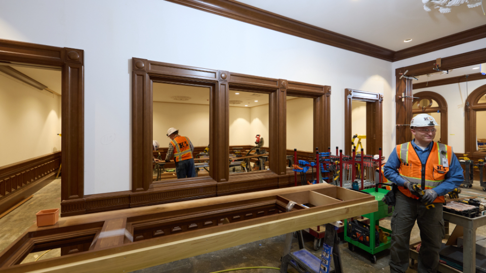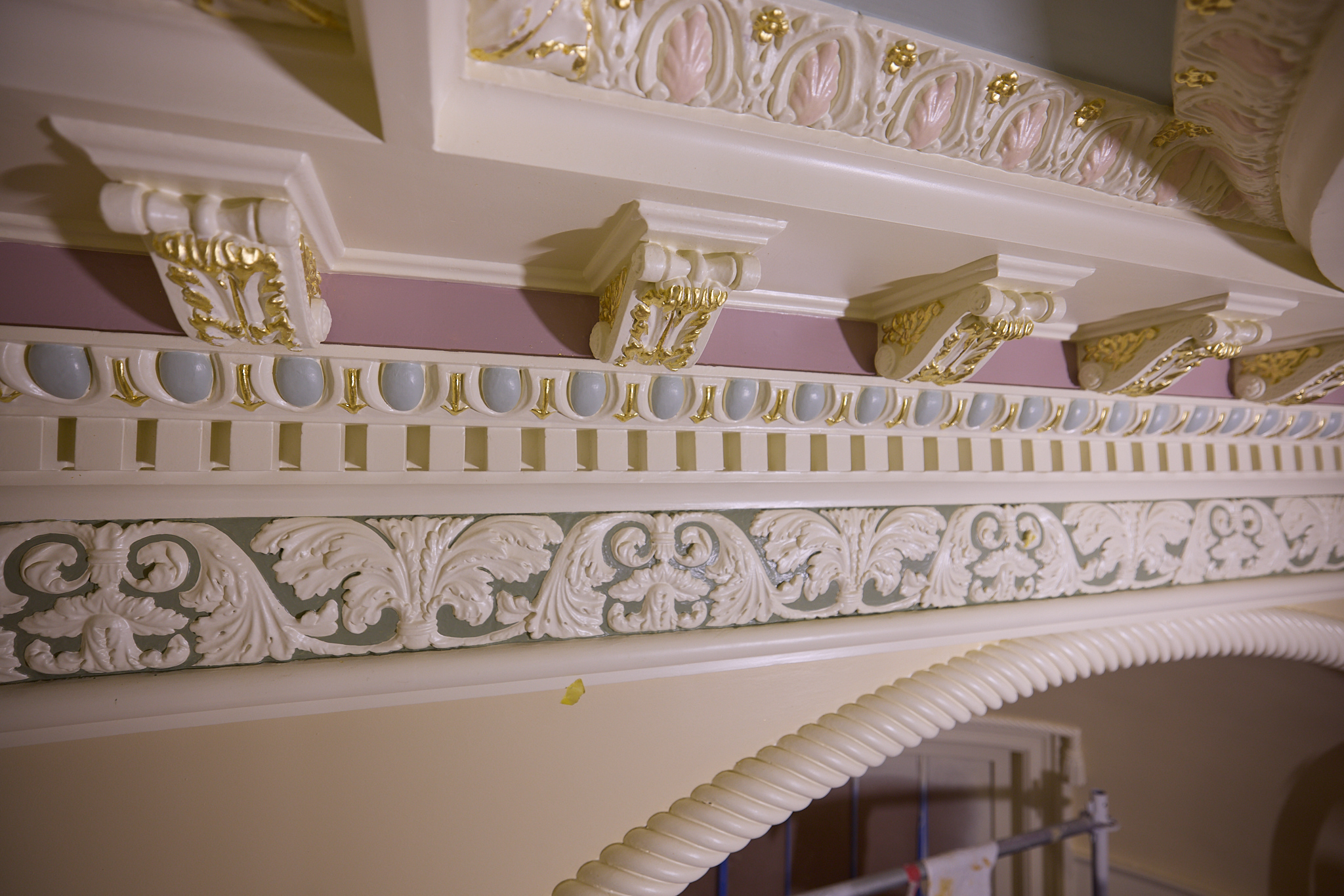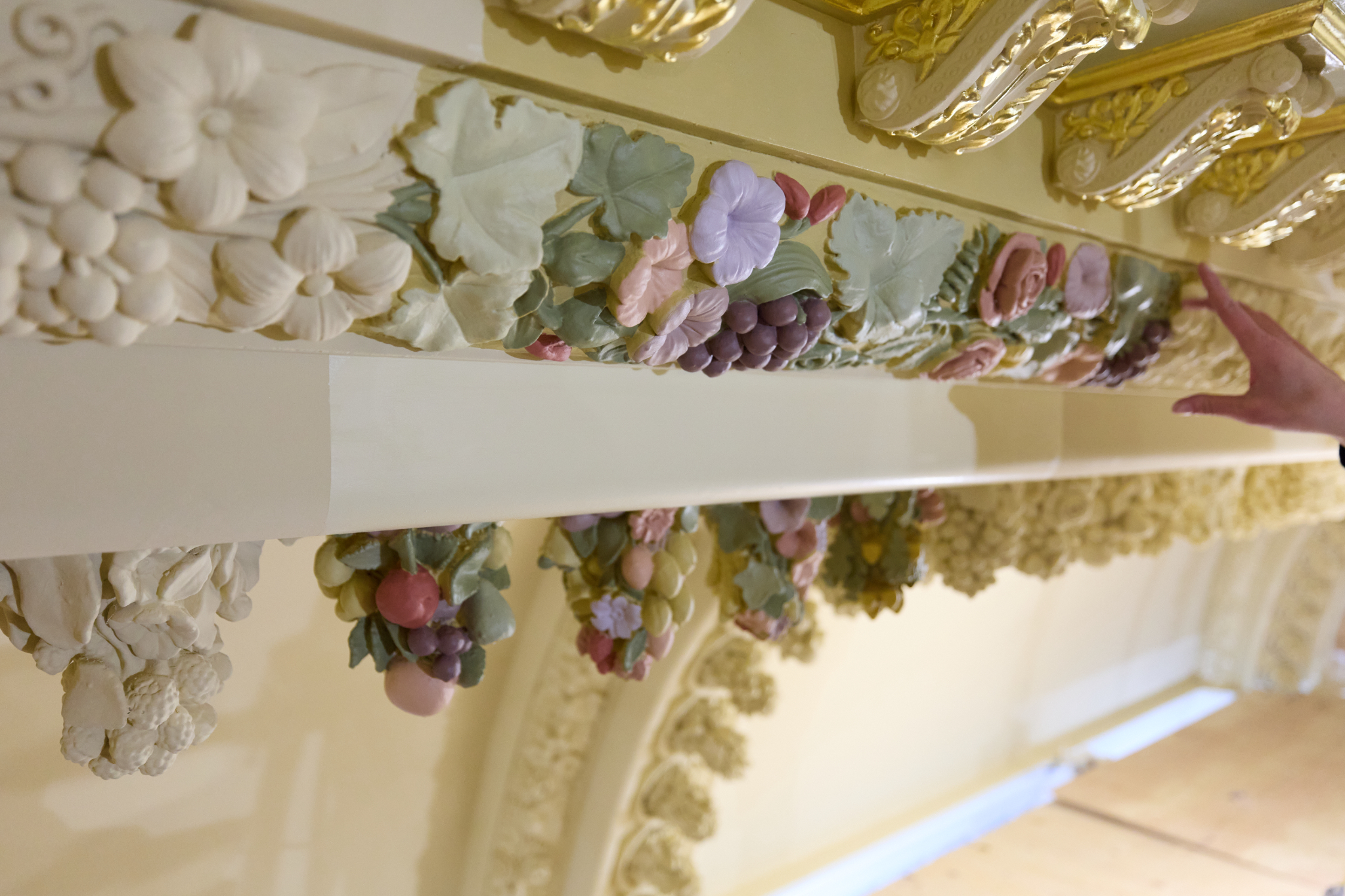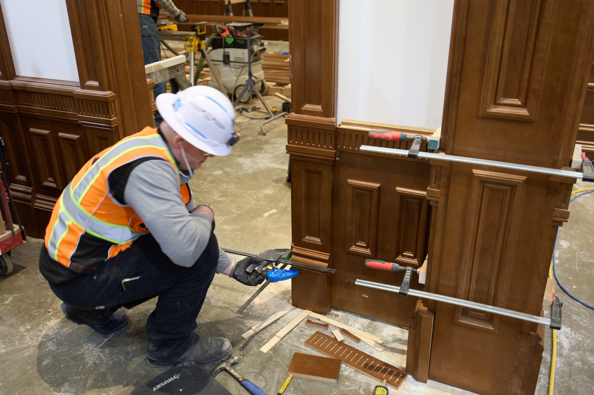 Artist does delicate finish work in one of the sealing rooms in the north addition of the Salt Lake Temple on Wednesday, February 12, 2025.2025 by Intellectual Reserve, Inc. All rights reserved.Inside the historic temple, finish work is underway in the celestial room and adjoining original sealing rooms, which had to undergo abatement work to remove lead-based paint.