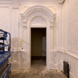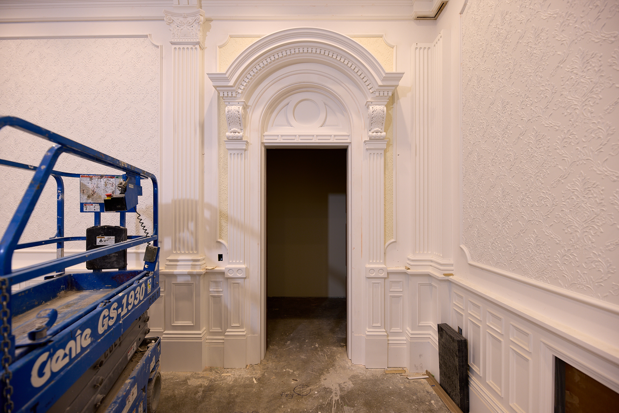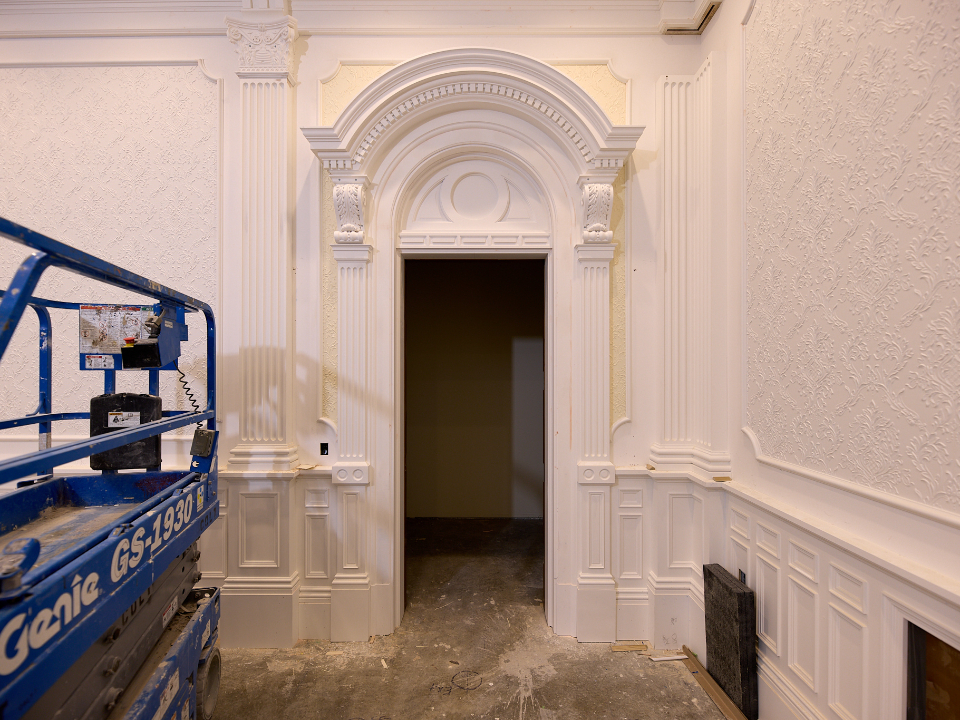 Finish work being done inside a sealing room in the north addition of the Salt Lake Temple in Salt Lake City, Utah, on Monday, December 16, 2024. 2025 by Intellectual Reserve, Inc. All rights reserved.At the west entry pavilion on North Temple Street, stone cladding work is being installed.