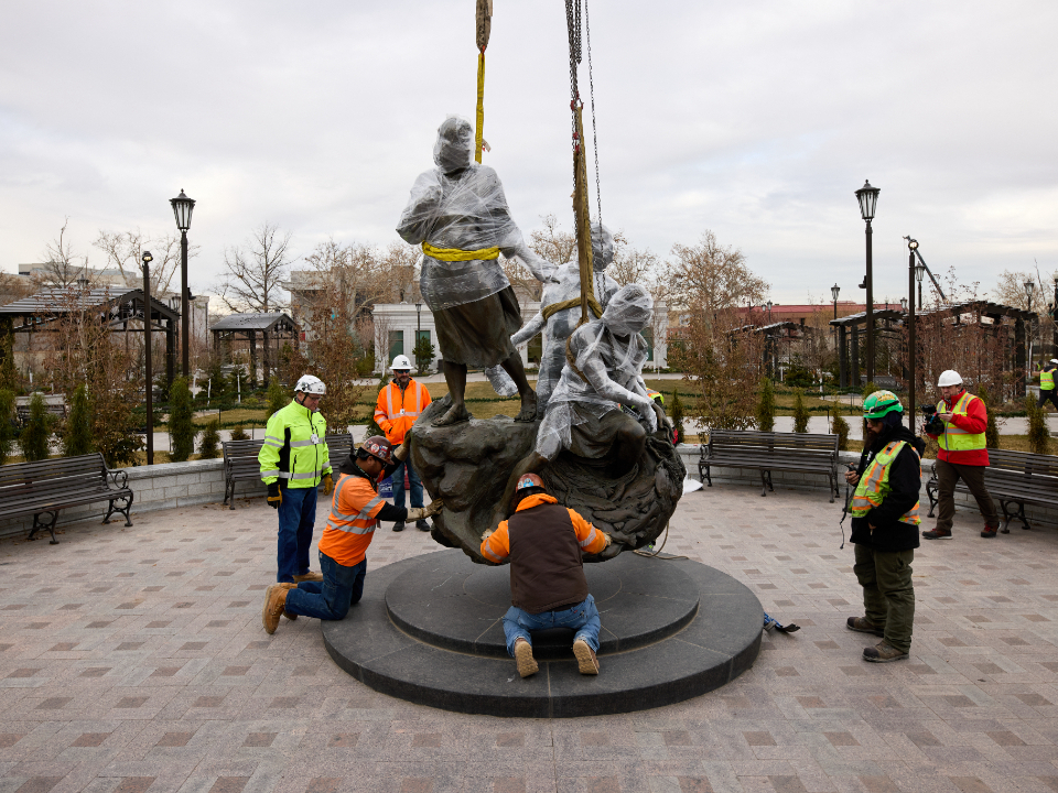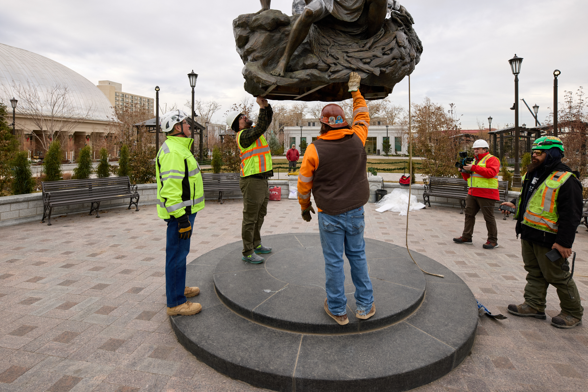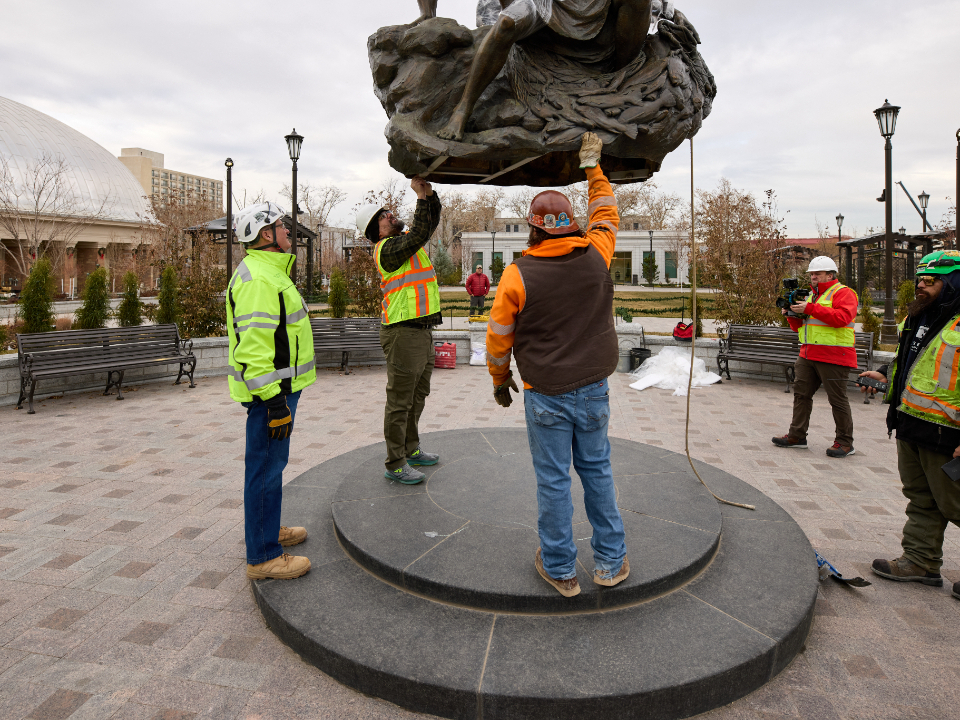 The Come, Follow Me statue is placed in the northwest quadrant of Temple Square in Salt Lake City, Utah, on December 16, 2024. 2024 by Intellectual Reserve, Inc. All rights reserved.More sculptures depicting the life and teachings of Jesus Christ and the restored gospel will be placed around Temple Square in 2025 and 2026.