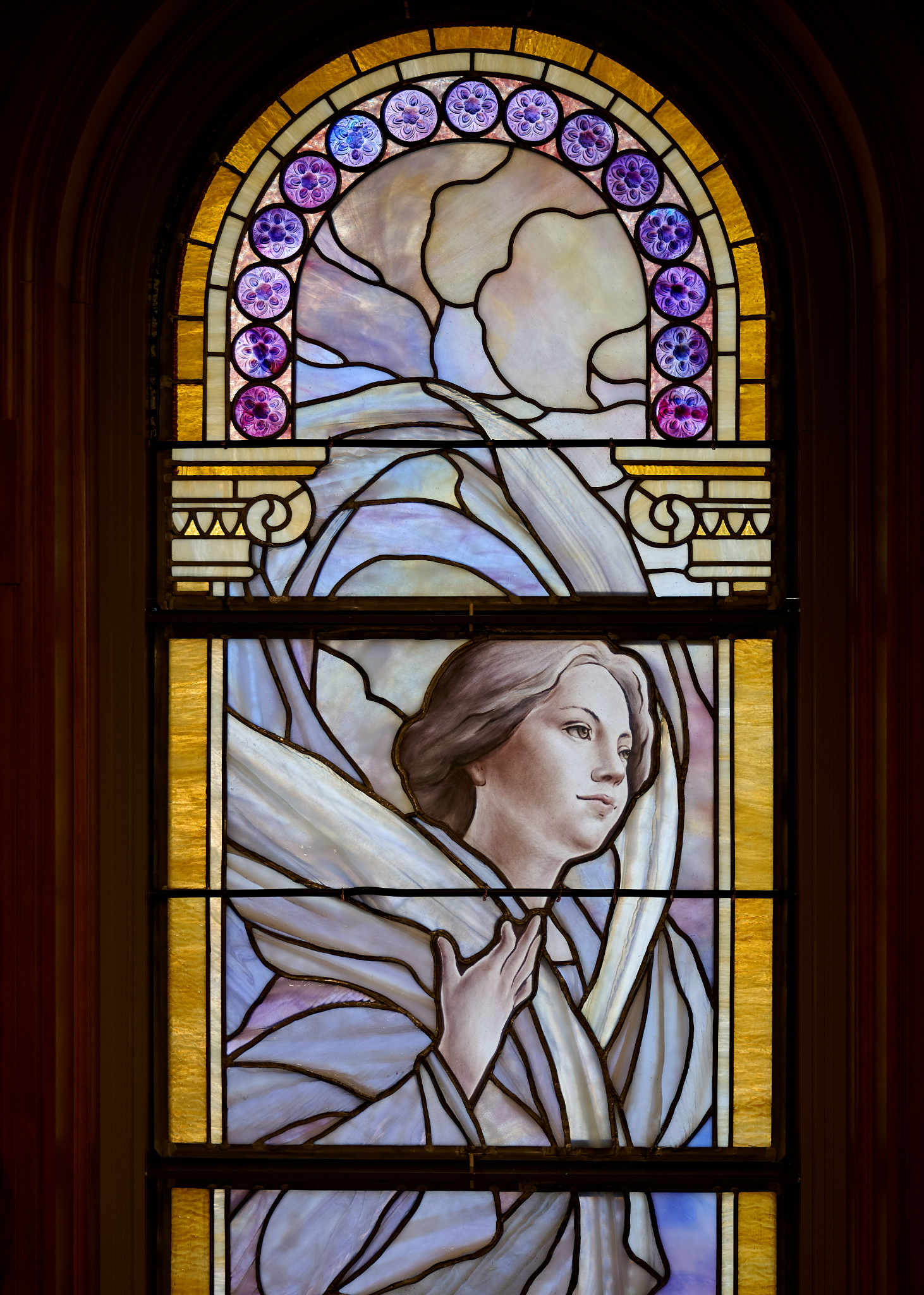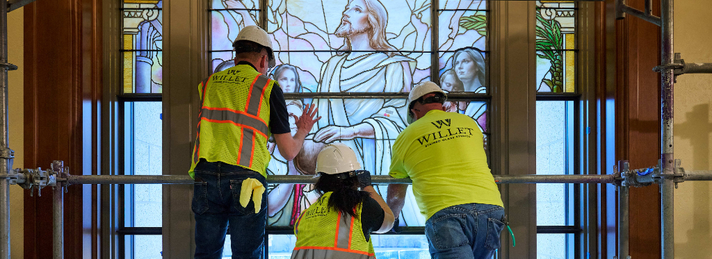 Beautiful new art glass has recently been installed in the temple entrance buildings on Temple Square.