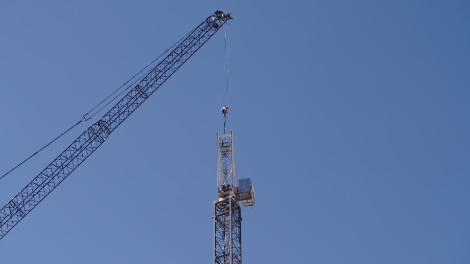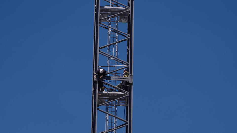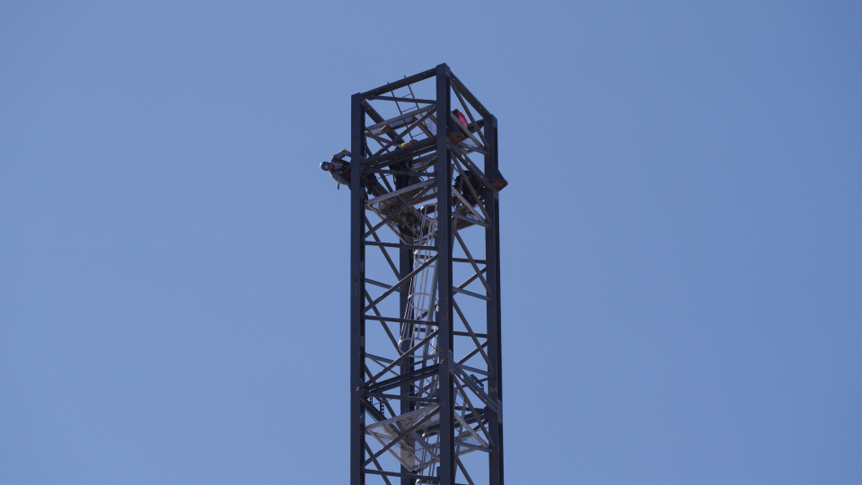 Removing a crane requires careful coordination. Crews brought two additional cranes on site — one to assemble the tall crane, which would then dismantle the tower crane.