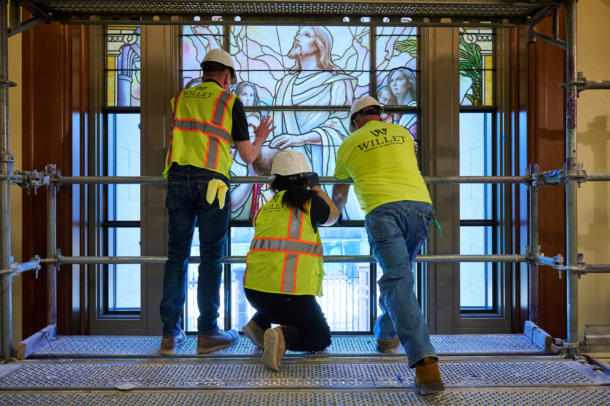 Installation required careful coordination and planning. For several days, crews meticulously placed the panels to ensure the delicate pieces were installed safely and precisely.