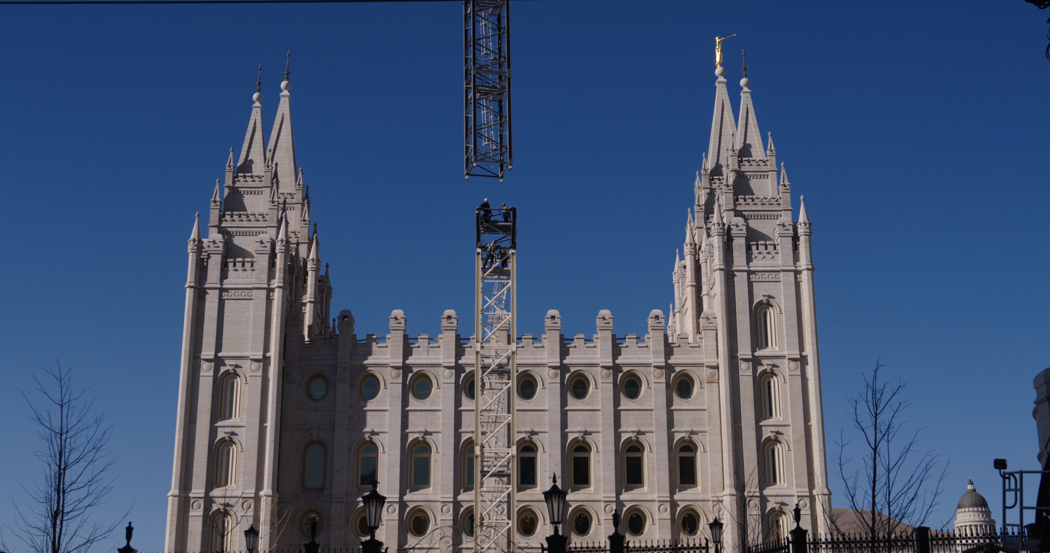 Another renovation milestone occurred this week as crews dismantled the south tower crane, which had stood between the historic temple and the Visitors’ Center for the past 5.5 years.
