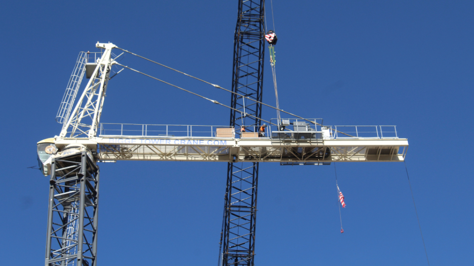 The south tower crane, the longest in operation on-site, will remain in place until spring 2026.