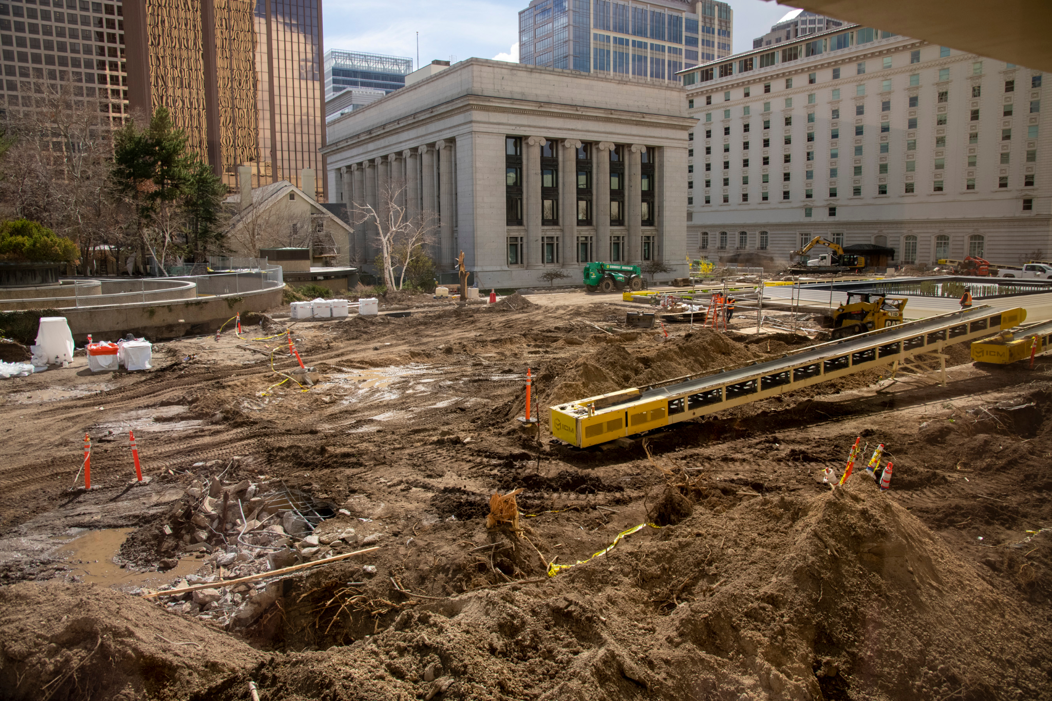 2021 by Intellectual Reserve, Inc. All rights reserved.The Church Office Building Plaza has undergone a significant change. Most of the area surrounding the fountain has been excavated in preparation for significant restructuring and landscaping work.
