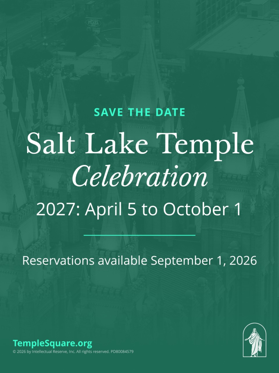 All are welcome to join in the open house celebration to tour the newly renovated Salt Lake Temple and surrounding Temple Square from April 2027 to October 2027. Reservations will be available September 1, 2026, on the Temple Square app or at TempleSquare.org.