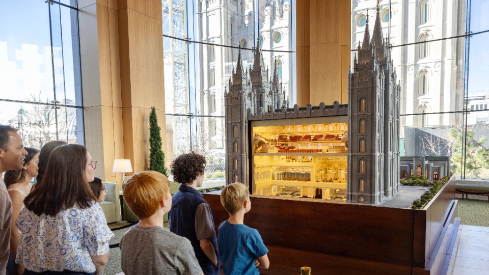 The lower level also includes scaled models of 11 temples from around the world and exhibits that explore the ties between faith, family, and Christ — spanning cultures and continents.