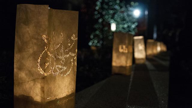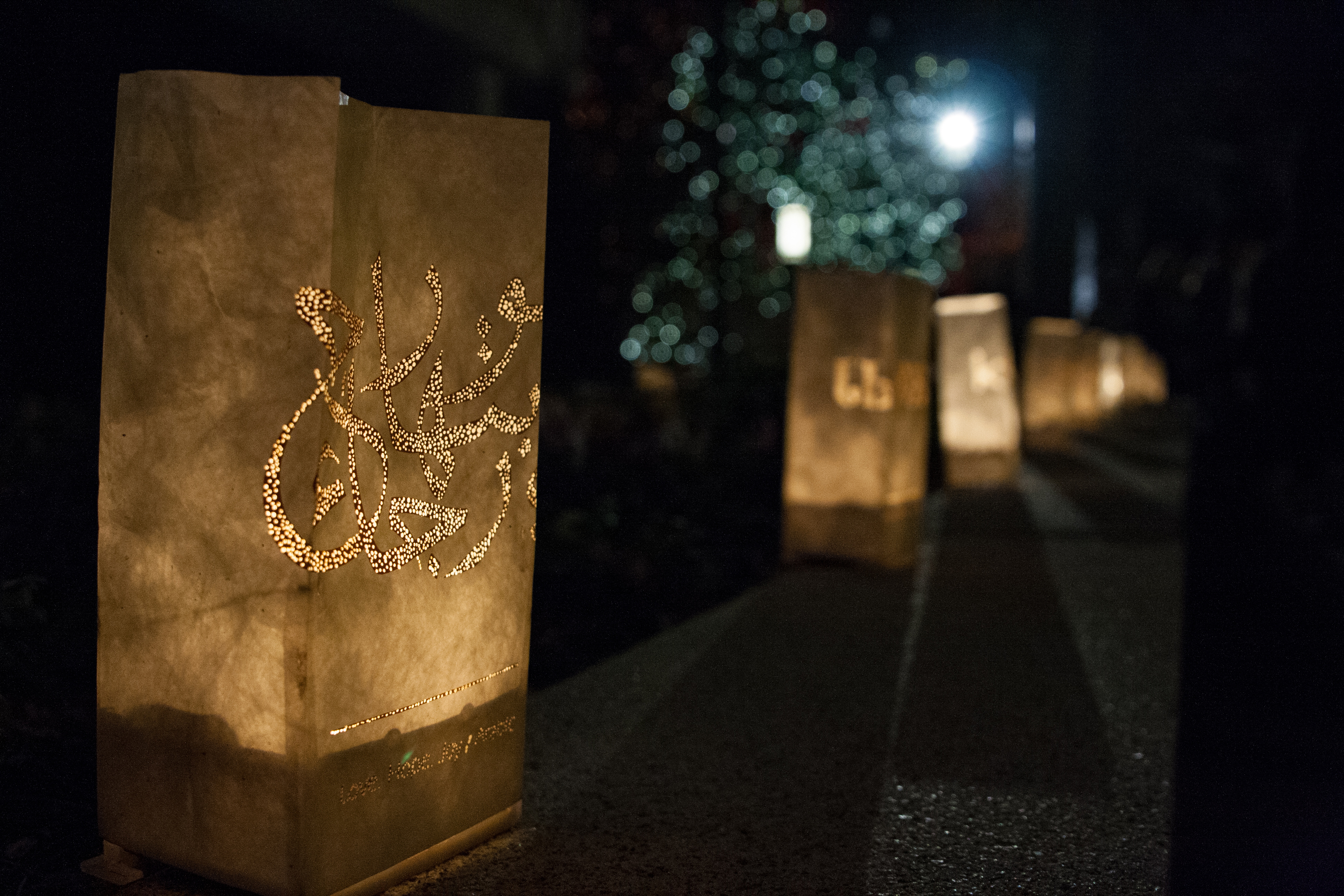 Luminaries, in a number of languages, are placed around Temple Square tell the story of the Savior’s birth.
