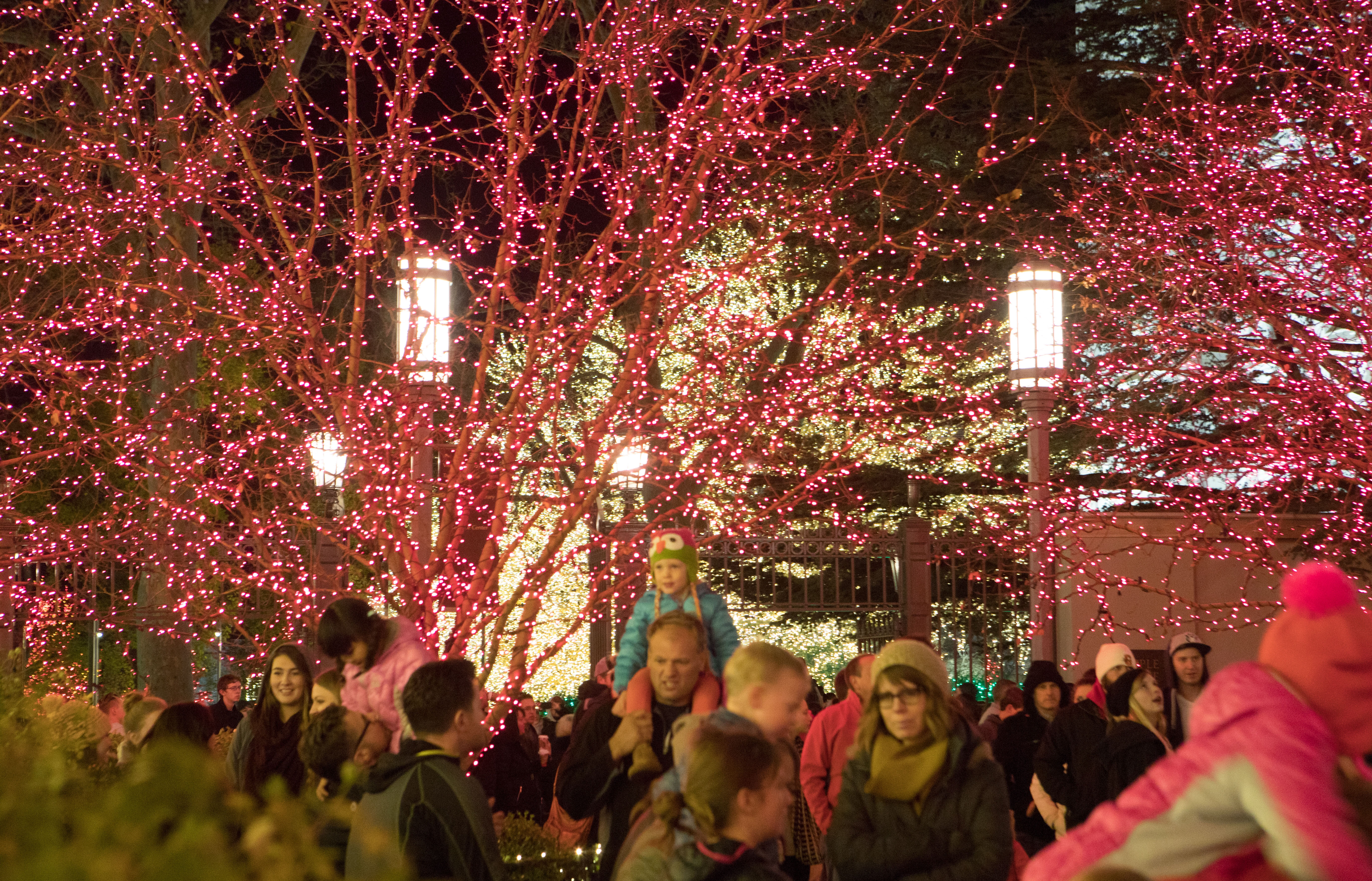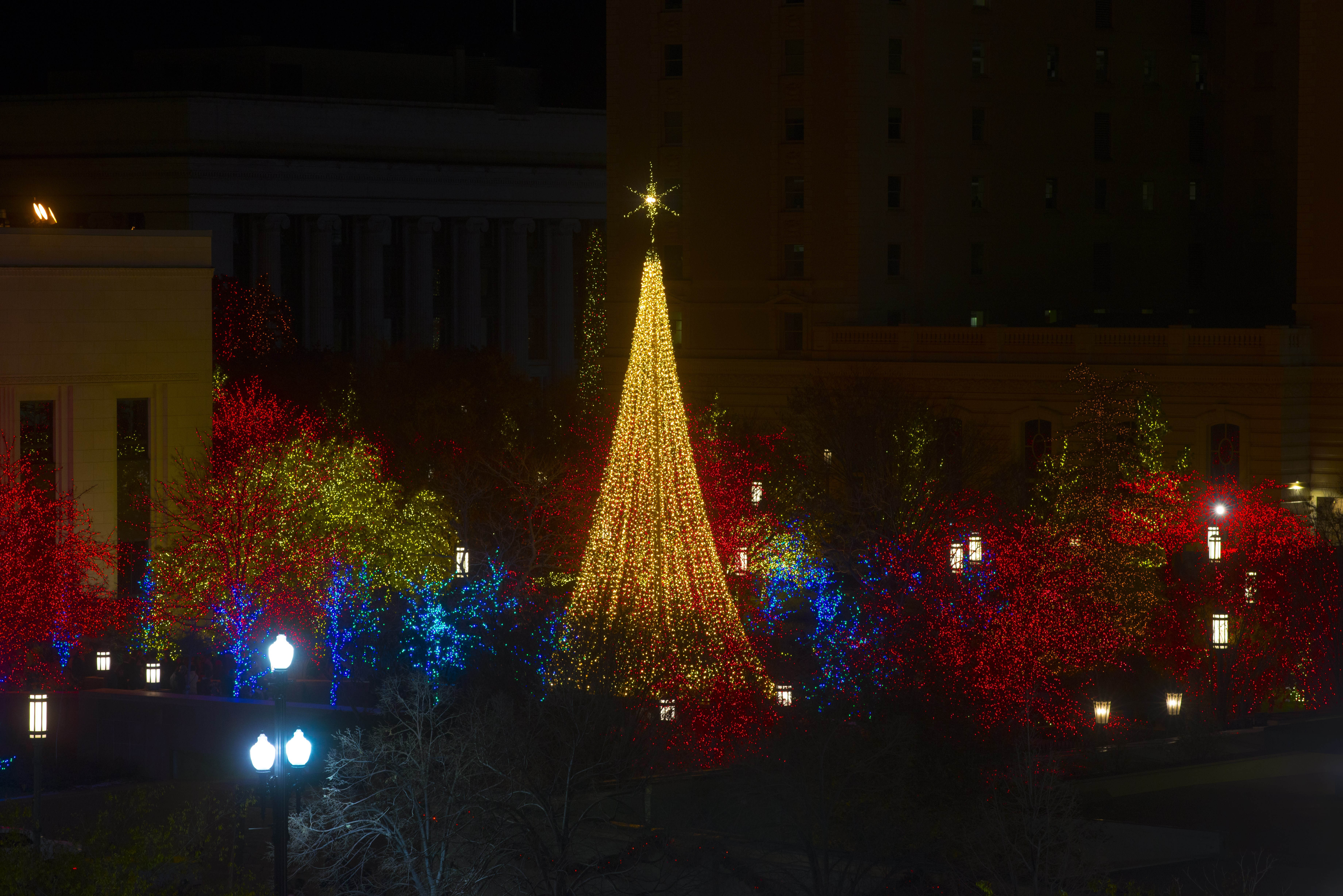 Thousands of people visit Temple Square in the heart of downtown Salt Lake City the day after Thanksgiving for the lighting ceremony every year. It’s an annual tradition for many families, who gather near the Salt Lake Temple to watch millions of sparkling lights illuminate the popular tourist attraction during the Christmas season—a time when faithful Christians around the world celebrate the birth of Jesus Christ. There is no cost to visit Temple Square and walk around the 35 acres of decorated landscape.