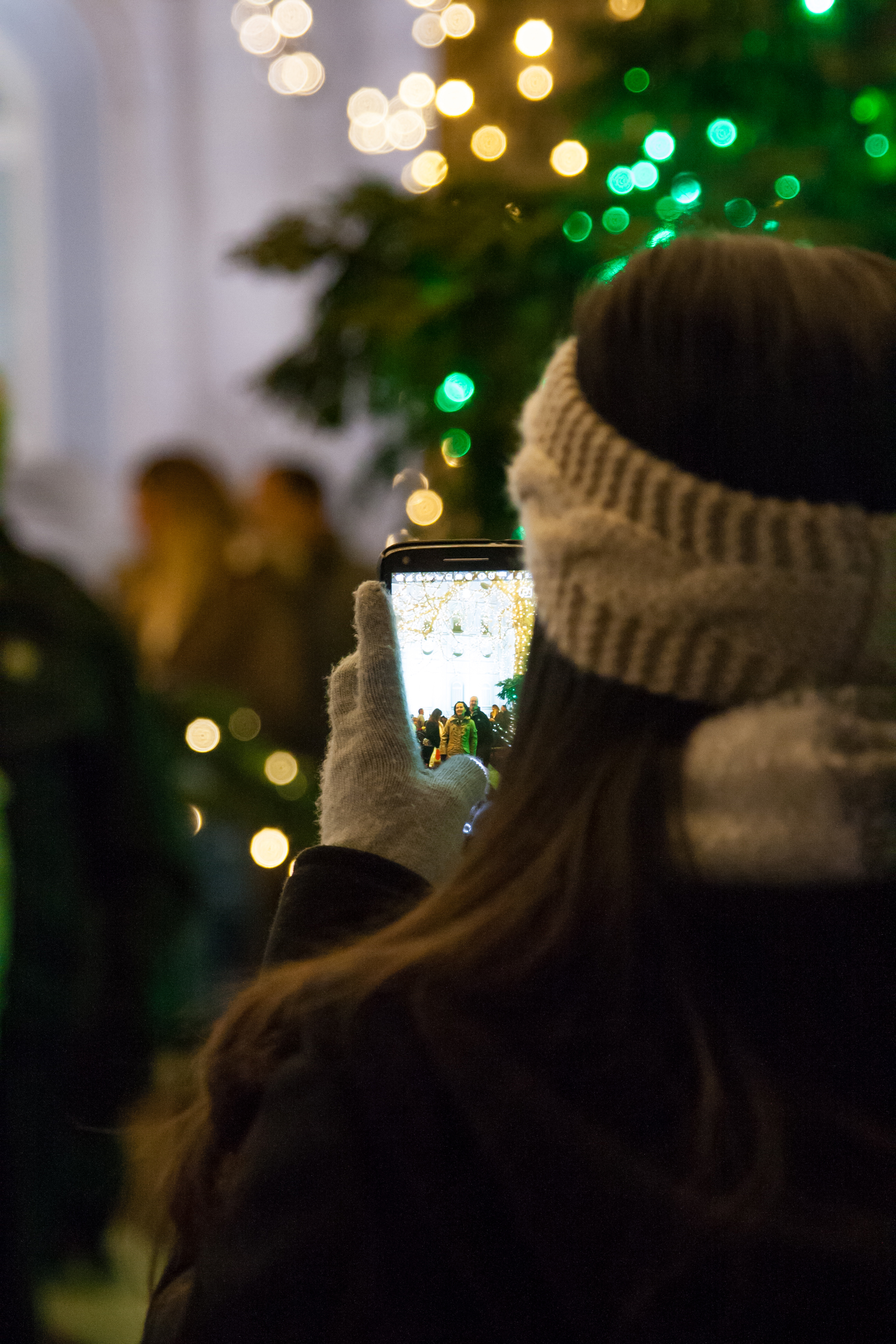 Children share their enthusiasm over the Christmas lights.