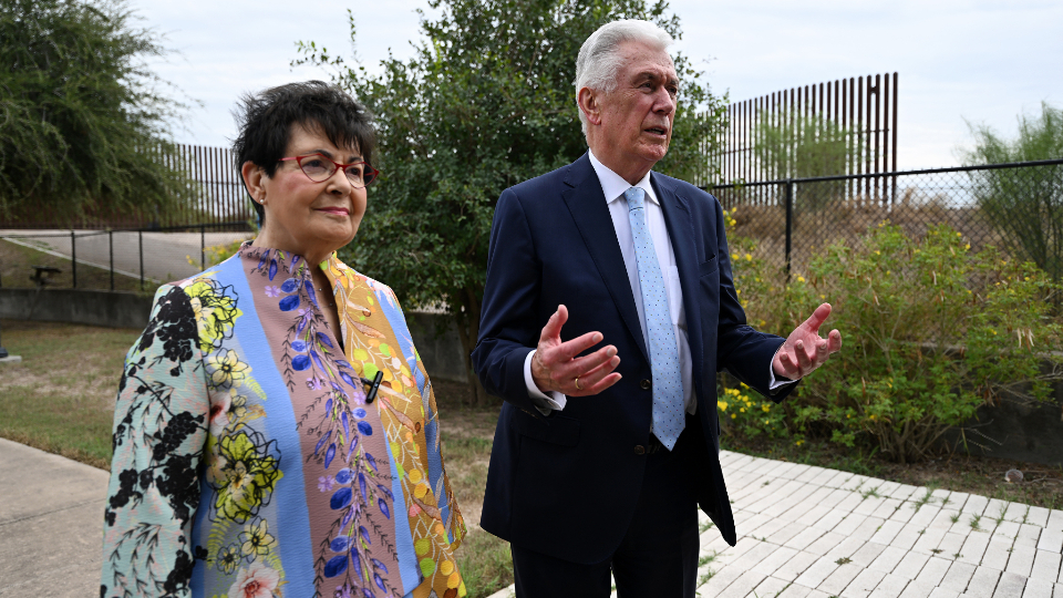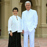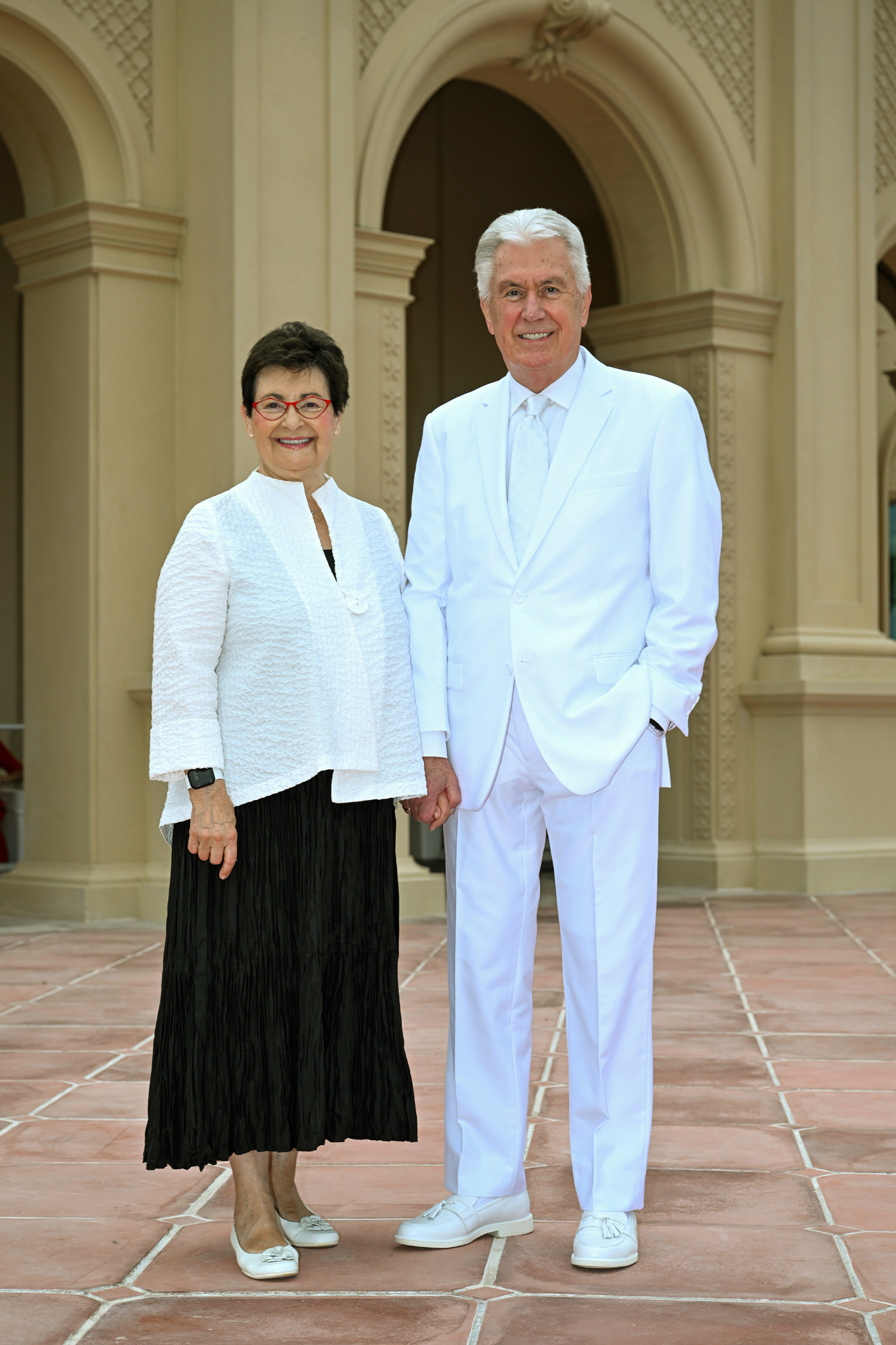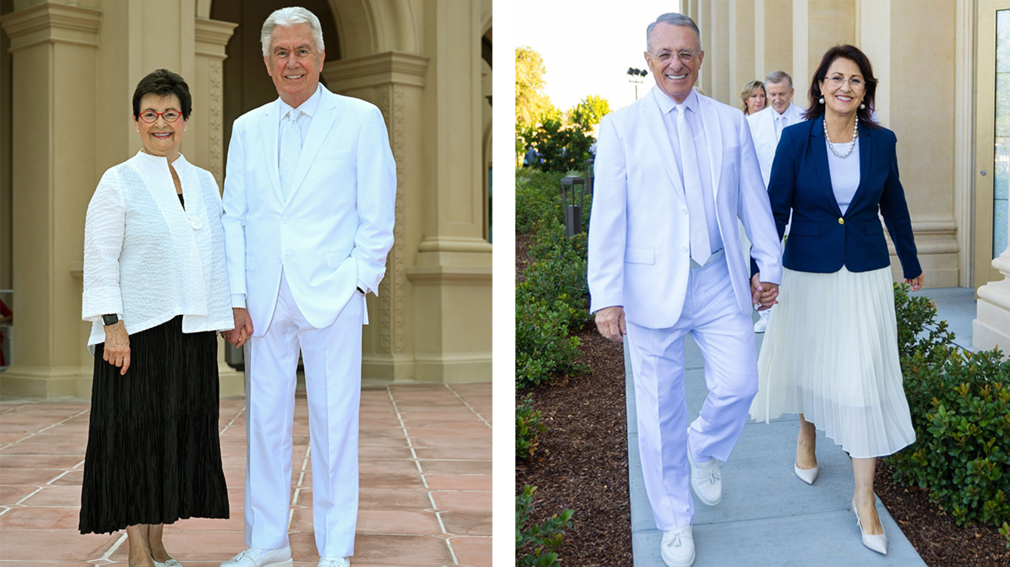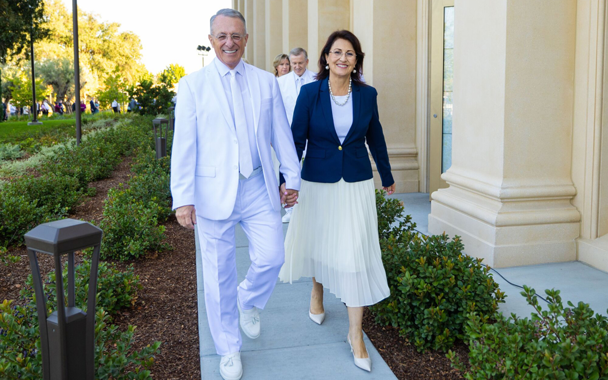 Elder Dieter F. Uchtdorf of the Quorum of the Twelve Apostles of The Church of Jesus Christ of Latter-day Saints and his wife, Sister Harriet Uchtdorf, pose for photos at the McAllen Texas Temple on Saturday, October 7, 2023.“The spreading of the restored gospel did not stop at political or social boundaries; it expanded on both sides of the Rio Grande,” he said.