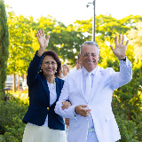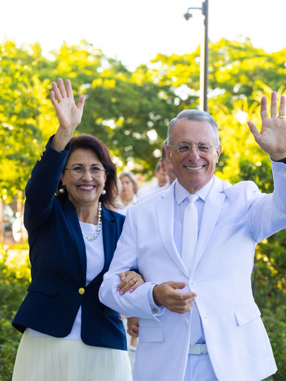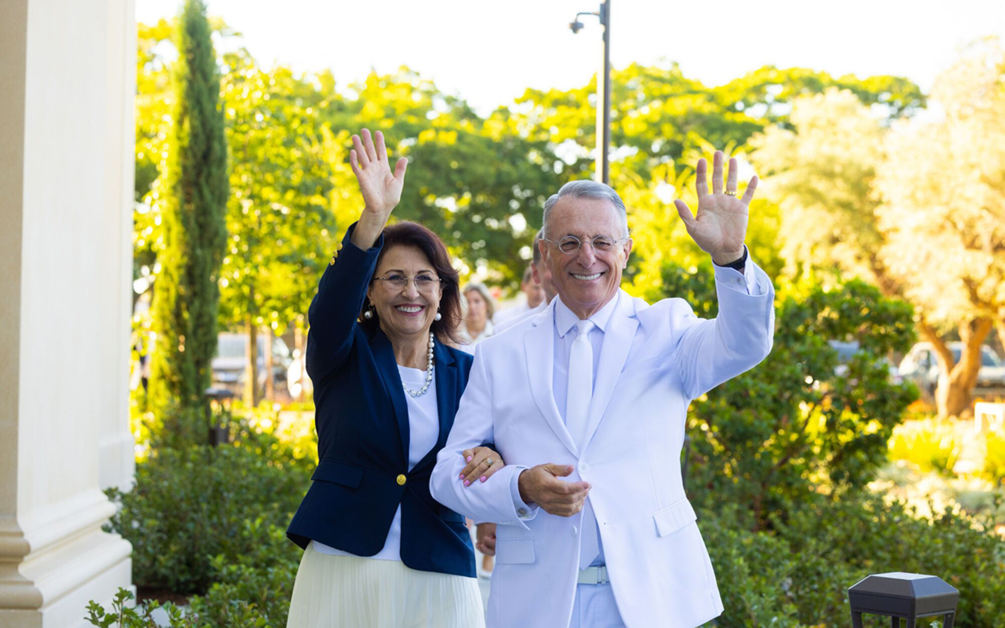 Sister Rosana Soares and Elder Ulisses Soares, Quorum of the Twelve Apostles waving to members prior to the dedication of the Feather River California temple in Yuba City, on Sunday October 8, 2023.‘A Special Day’