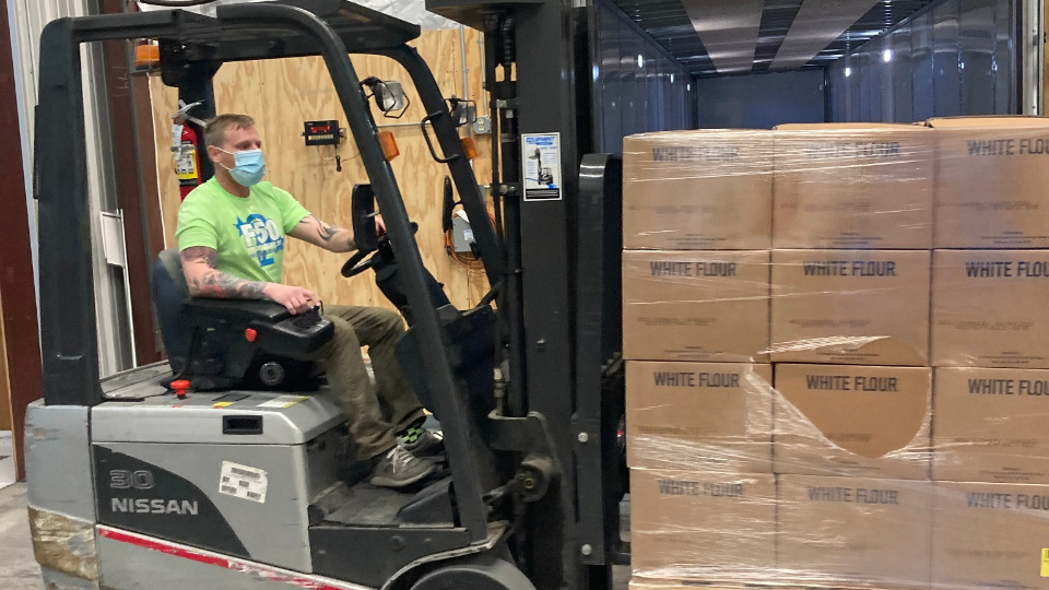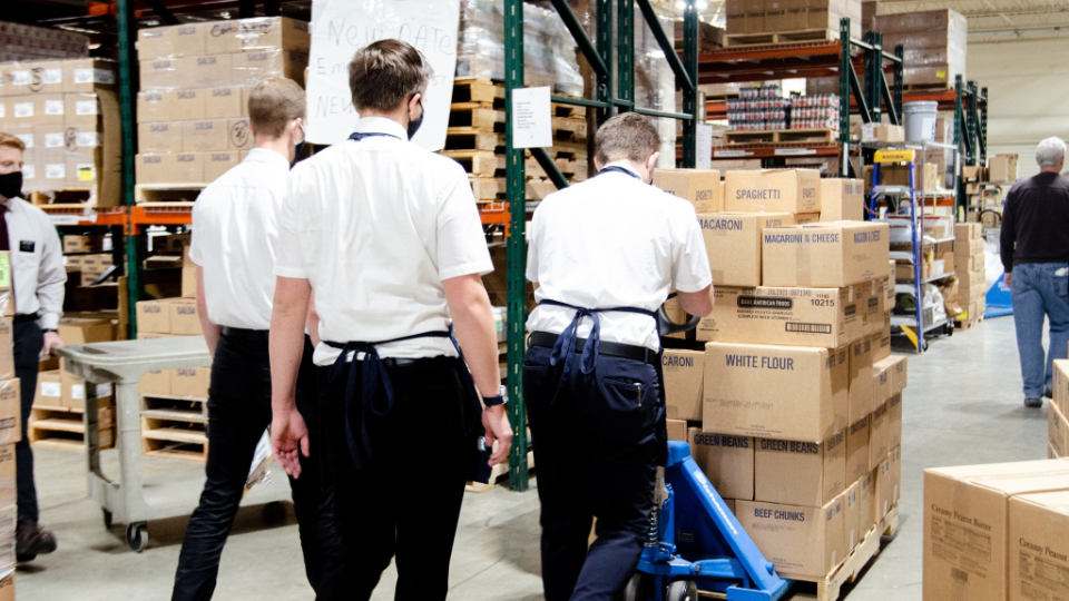 The Church delivered 25 pallets of food weighing more than 42,000 pounds to the East Texas Food Bank in Tyler on Wednesday, February 24, 2021. Some pallets were distributed to the Harvest Regional Food Bank in Texarkana.