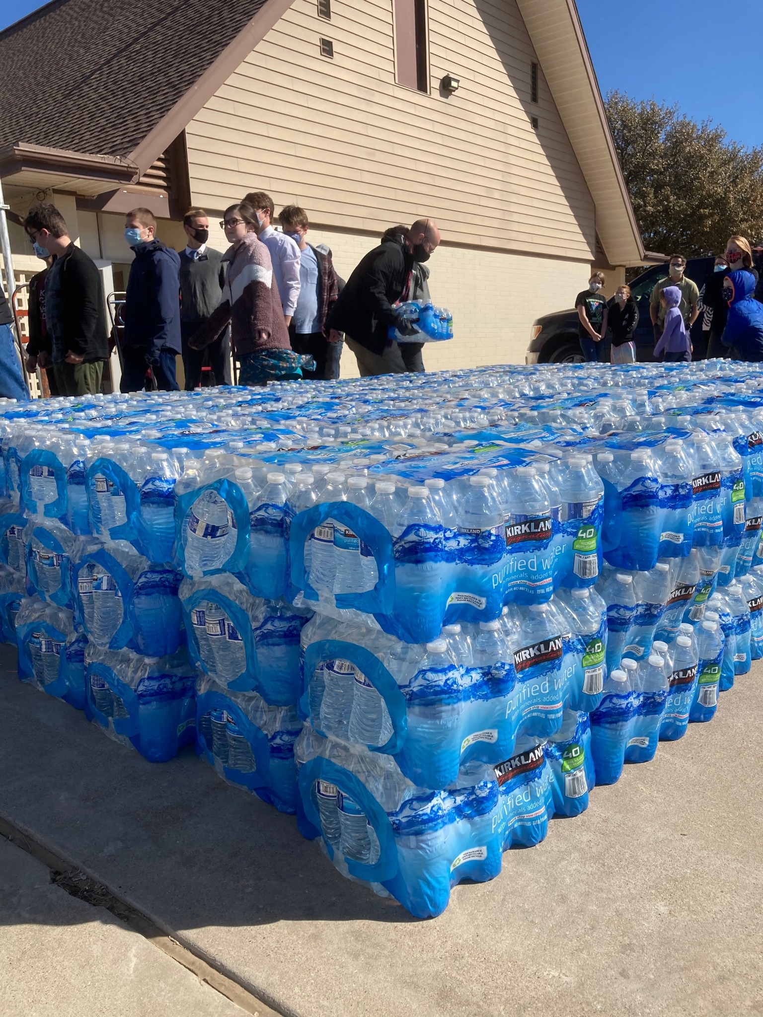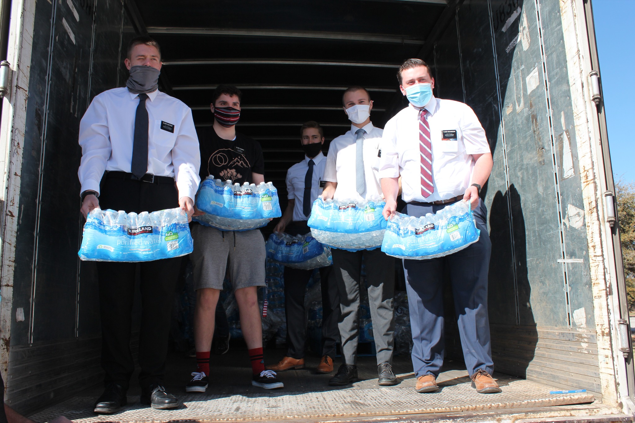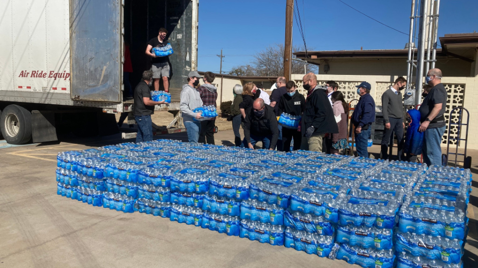 On February 21, Latter-day Saints were busy unloading 20 pallets of bottled water in Church parking lots to help the Abilene and San Angelo communities. Working with the United Way of the Concho Valley in San Angelo, the Church provide water for many citizens who called in for help.