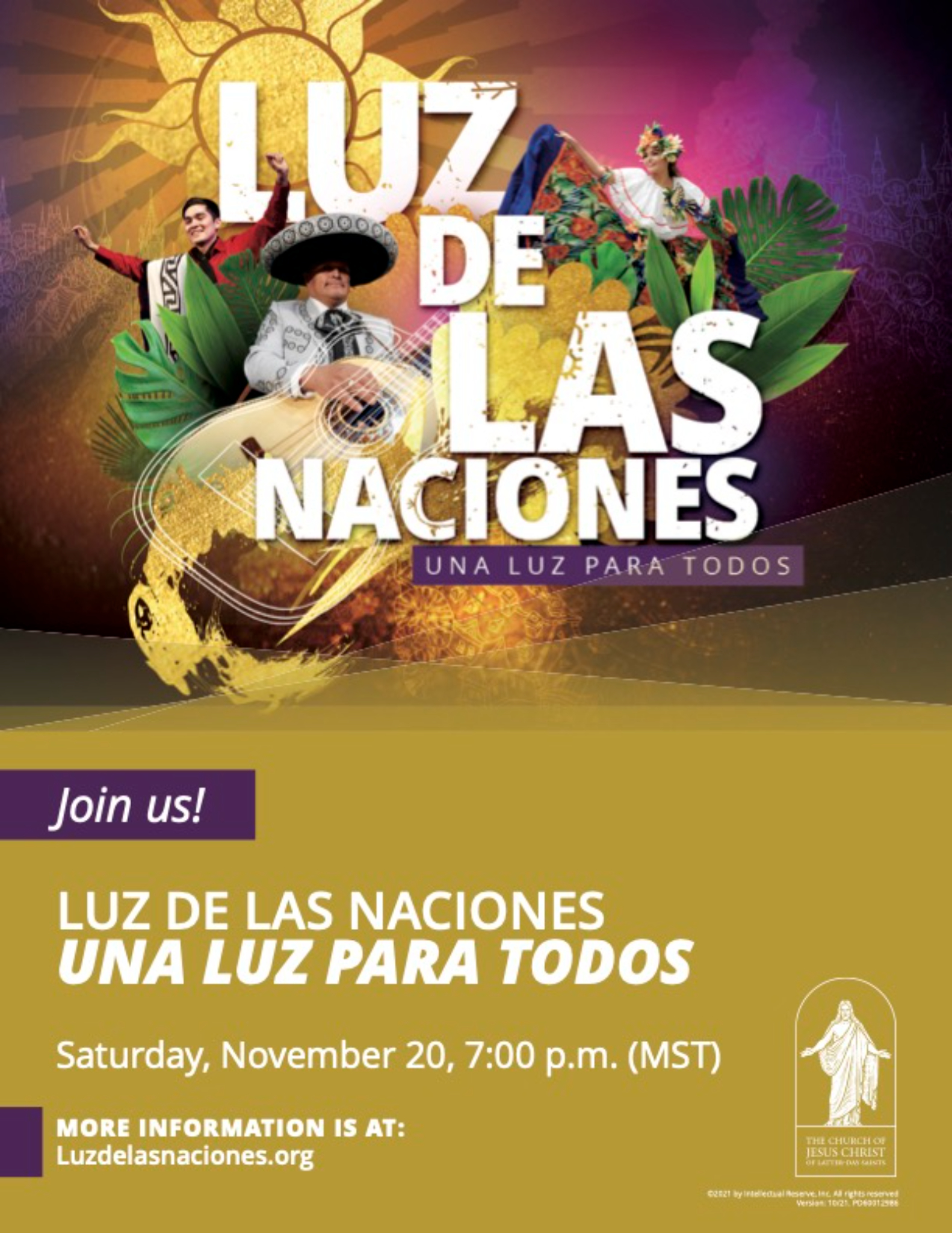 The broadcasted event, “Luz de las Naciones: A Light for Everyone,” will be available for streaming on Saturday, November 20, at 7 p.m. MST.