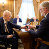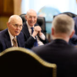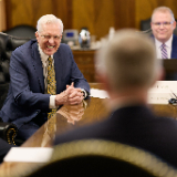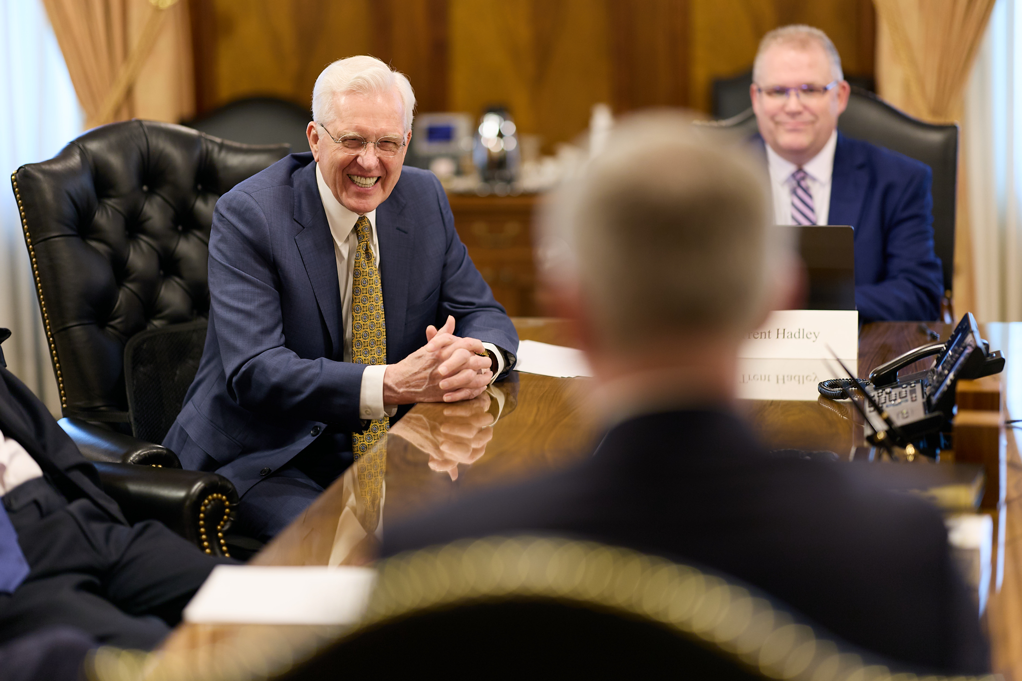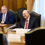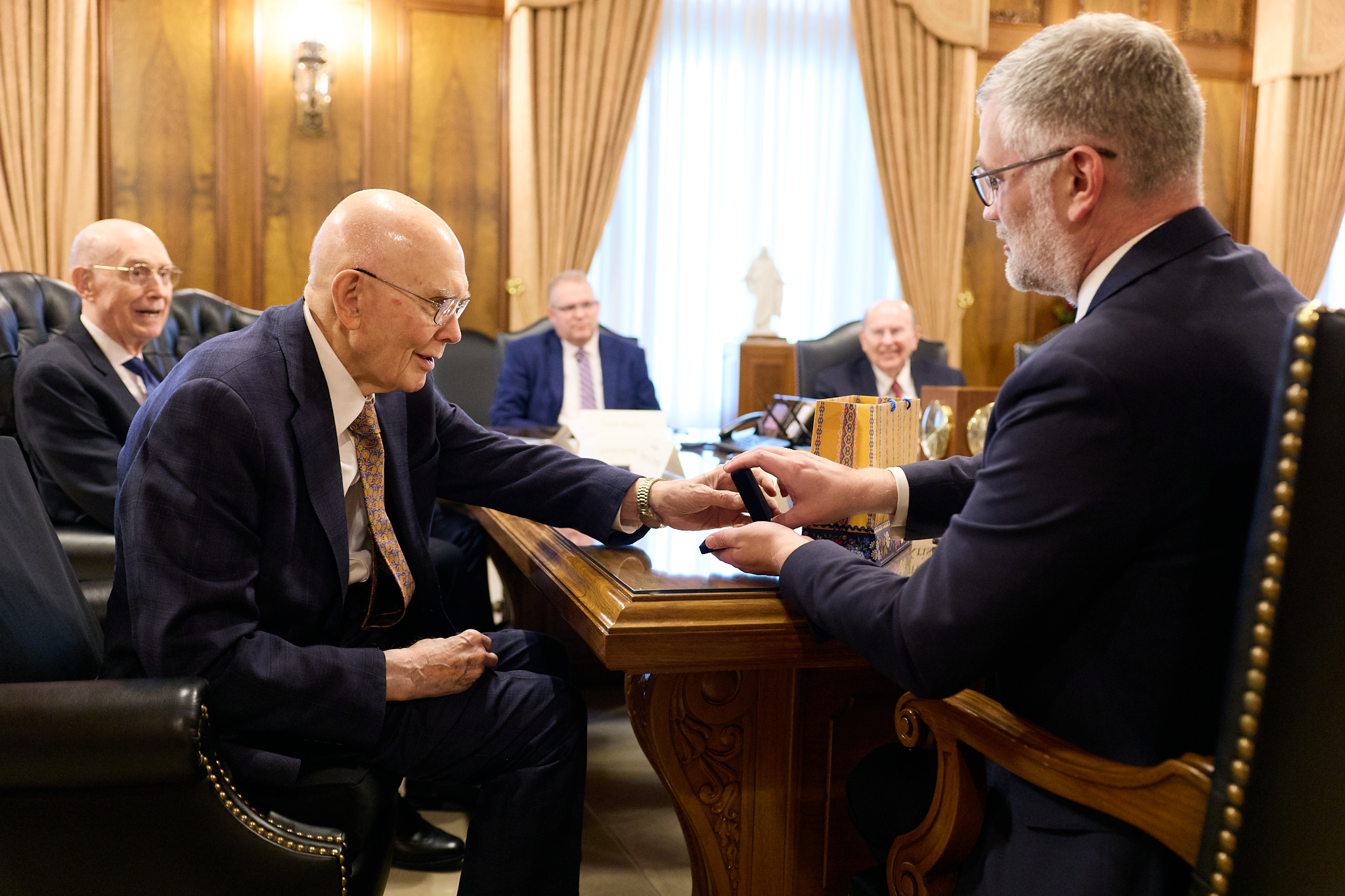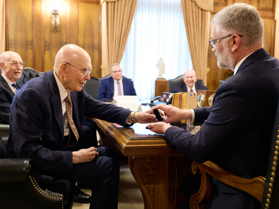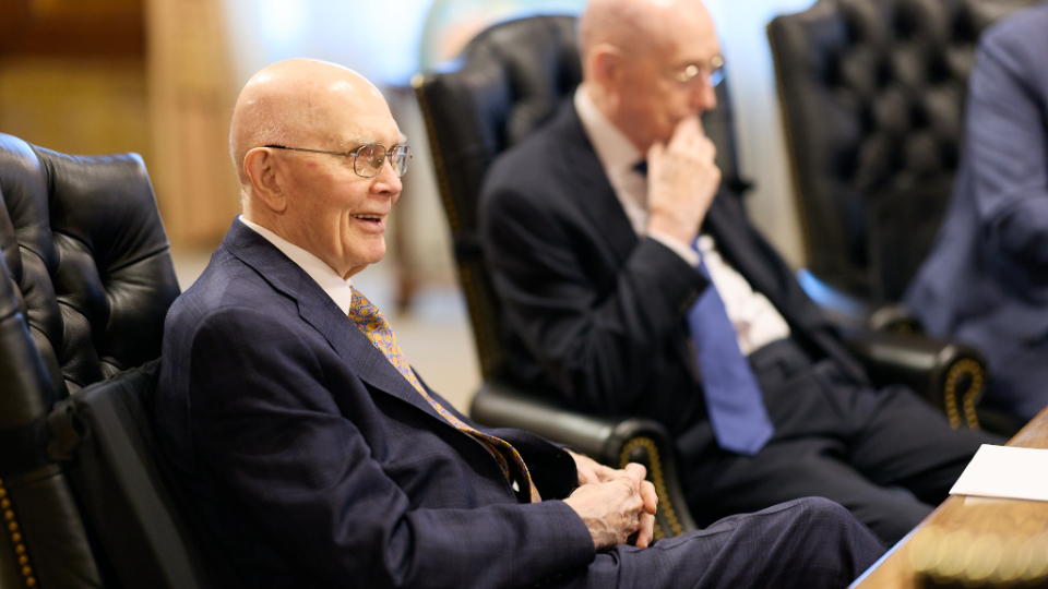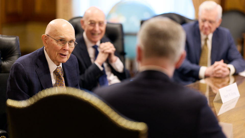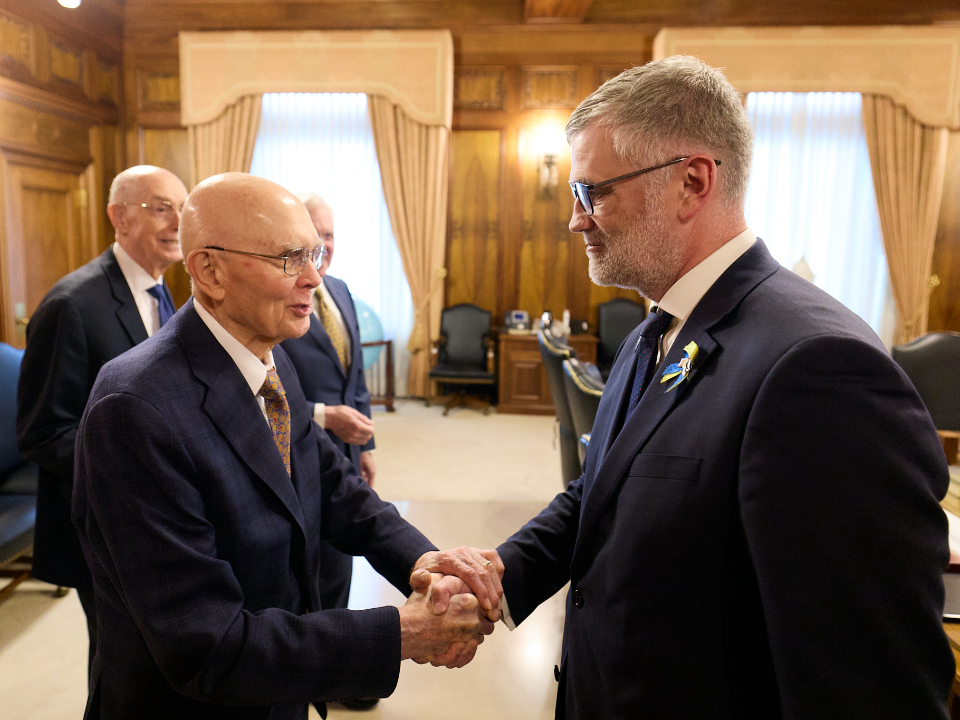 President Dallin H. Oaks, President Henry B. Eyring, President D. Todd Christofferson and Elder Quentin L. Cook of the Quorum of the Twelve Apostles, whom Ambassador Prikk first met in 2021, were in attendance.